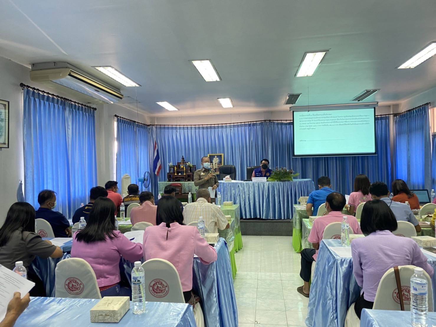 เมื่อบ่ายวันที่ 1 พ.ย. 2565 เวลา 13.30 น. พ.ต.ท.สุรมนต์ เฉลิมจันทร์ รอง ผกก.(สอบสวน) สภ.ลอง รรท.ผกก.สภ.ลอง จ.แพร่ มอบหมายให้ พ.ต.ท.ขวัญชัย แป้นมณฑา รอง ผกก.สส. และชุดปฏิบัติการชุมชนยั่งยืน เพื่อแก้ไขปัญหายาเสพติดแบบครบวงจร ตามยุทธศาสตร์ชาติ สภ.ลอง ร่วมประชุมหารือกับนายโชติพงศ์ เปล่งวิทยา นอภ.ลอง พระครูสิริสุเมธากร รองเจ้าคณะ อ.ลอง น.ส.ภิญญาพัชร์ วันสิริภักดิ์ นายก อบต.หัวทุ่ง,ผอ.รพ.สต.หัวทุ่ง กำนัน,ผู้ใหญ่บ้าน, ผอ.ร.ร.ลองวิทยา,เจ้าหน้าที่พัฒนาชุมชน อ.ลอง ร่วมคัดกรอง ผู้ใช้ ผู้เสพ ผู้ติดยาเสพติด ผู้ป่วยจิตเวช และขั้นตอนการดำเนินงานตามโครงการชุมชนยั่งยืน ฯ ในหมู่บ้านในเขตรับผิดชอบ ต.หัวทุ่ง ณ ห้องประชุม อบต.หัวทุ่ง อ.ลอง จ.แพร่