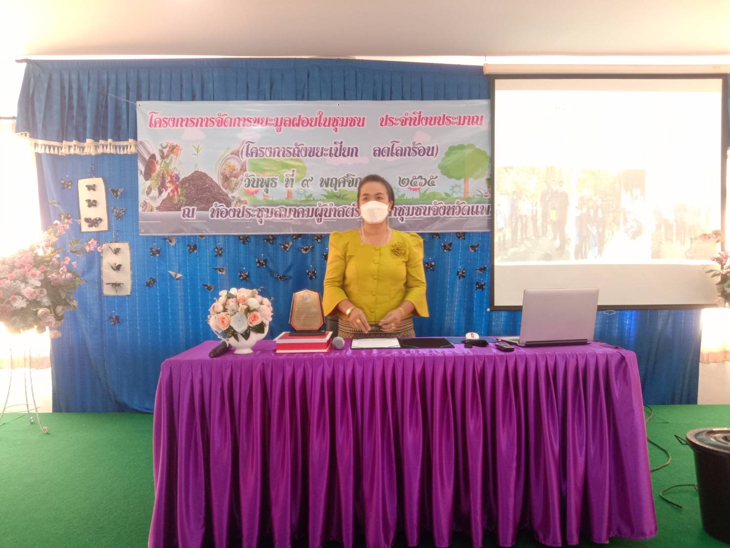 ร่วมพิธีเปิดโครงการฯ ซึ่งมีคณะกรรมการและตัวแทนของแต่ละหมู่บ้านเข้าร่วมการอบรม เพื่อให้มีการจัดการขยะมูลฝอยตั้งแต่ต้นทาง และเพื่อลดปริมาณขยะที่ต้องนำปหลุมฝังกลบ ซึ่งจะลดการเกิดก๊าซเรือนกระจกซึ่งเป็นสาเหตุของภาวะโลกร้อน อีกทั้งยังเป็นการขับเคลื่อนนโยบายของกระทรวงมหาดไทย ที่มอบหมายให้กรมส่งเสริมการปกครองส่วนท้องถิ่น ได้ดำเนินโครงการถังขยะเปียกลดโลกร้อนขององค์กรปกครองส่วนท้องถิ่น ประเทศไทย ตั้งแต่ พ.ศ. 2562 รวมทั้งเป็นการส่งเสิรมการคัดแยกขยะครัวเรือน ลดการปนเปื้อนขยะเปียกกับของเหลือใช้อื่นๆ สร้างรายได้เพิ่มจากการคัดแยกขยะ ลดภาระค่าใช้จ่ายโดยการใช้ปุ๋ยหมักที่เกิดจากถังขยะเปียก เพิ่มความอุดมสมบูรณ์ของดิน ลดผลกระทบต่อสิ่งแวดล้อมและชุมชน ตลอดจนลดปริมาณการปล่อยก๊าซเรือนกระจก ณ ห้องประชุม สมาคมผู้นำสตรีพัฒนาชุมชนจังหวัดแพร่