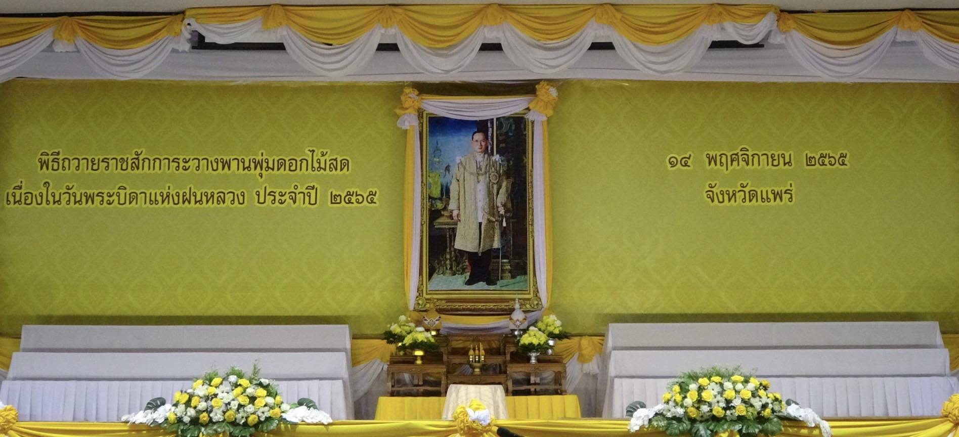 ทม.แพร่ และ อ.สูงเม่น ร่วมประกอบพิธีถวายราชสักการะวางพานพุ่มดอกไม้สด น้อมรำลึกในพระมหากรุณาธิคุณ พระบาทสมเด็จพระบรมชนกาธิเบศร มหาภูมิพลอดุลยเดชมหาราช บรมนาถบพิตร เนื่องในวันพระบิดาแห่งฝนหลวง ประจำปี 2565