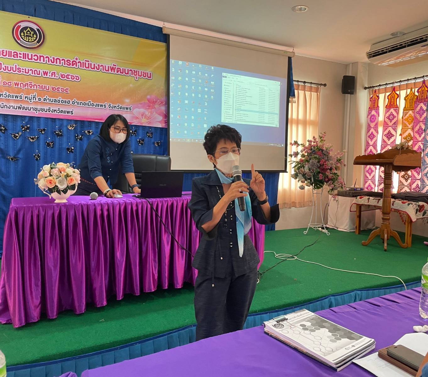 เมื่อวันที่ 18 พฤศจิกายน 2565 ณ สมาคมผู้นำสตรีพัฒนาชุมชนจังหวัดแพร่ หมู่ที่ 1 ตำบลช่อแฮ อำเภอเมืองแพร่ จังหวัดแพร่ นายวีรกานต์ บุญตัน พัฒนาการจังหวัดแพร่ เป็นประธานเปิดโครงการประชุมมอบนโยบายและแนวทางการดำเนินงานพัฒนาชุมชน ประจำปีงบประมาณ พ.ศ.2566