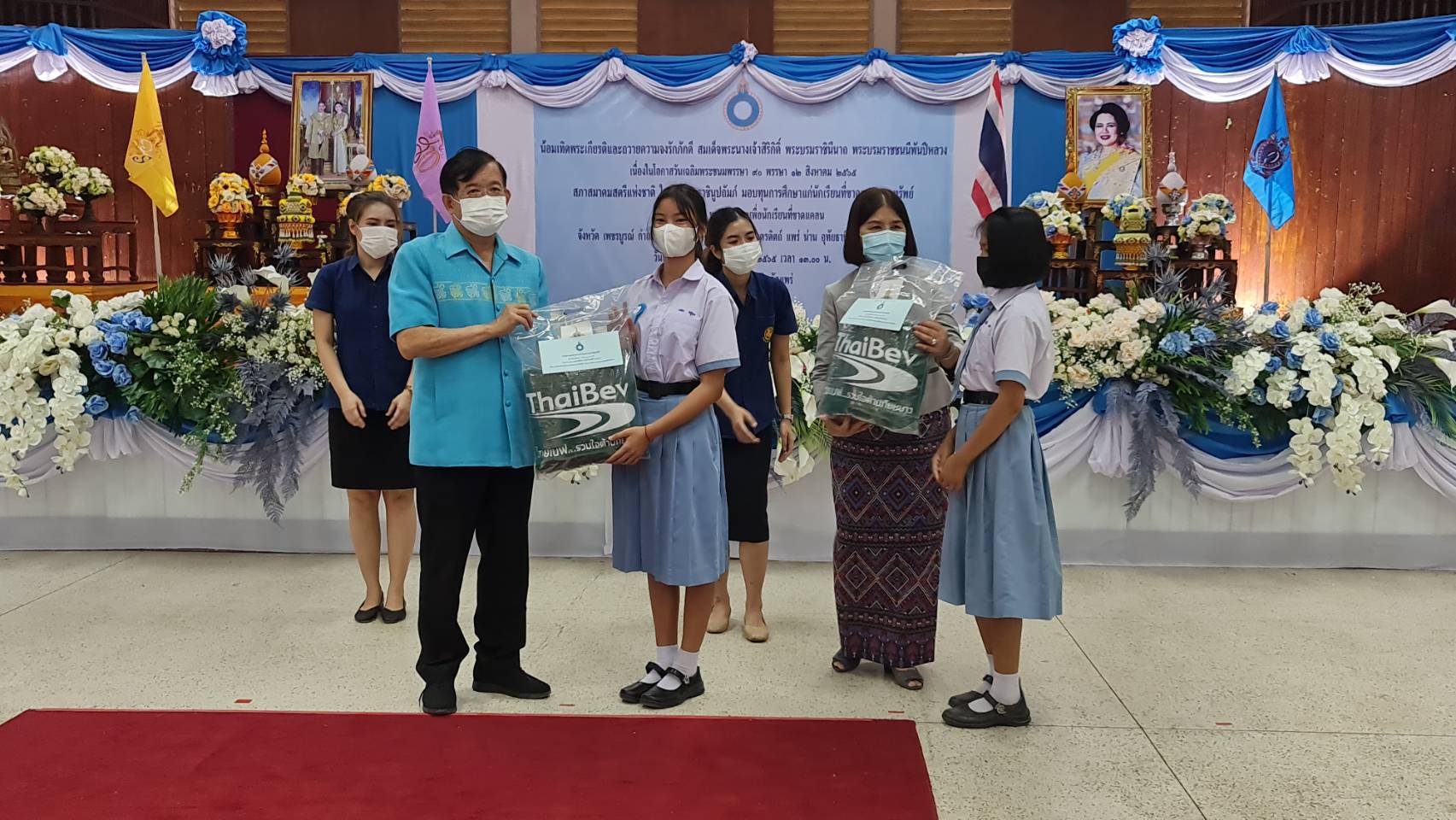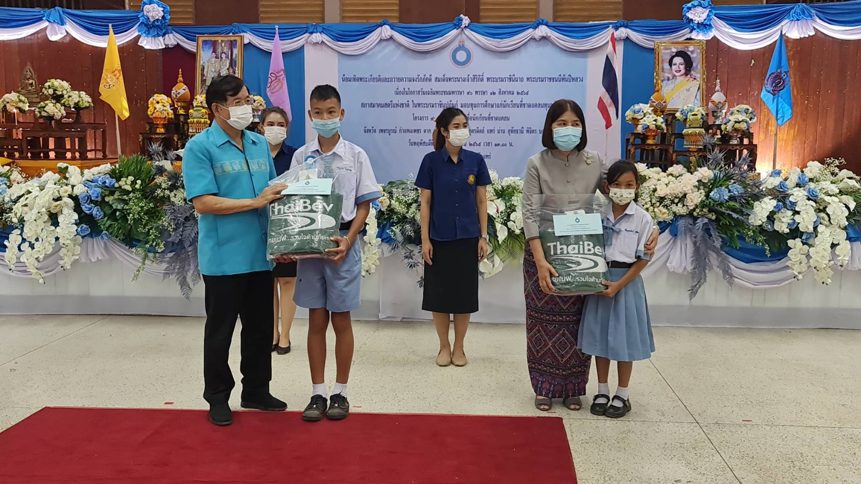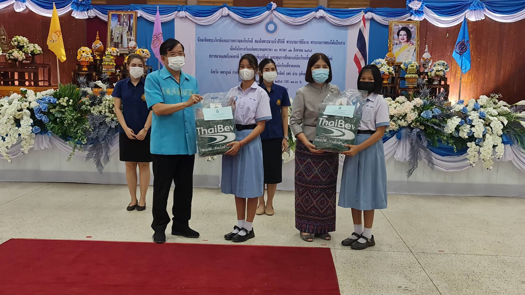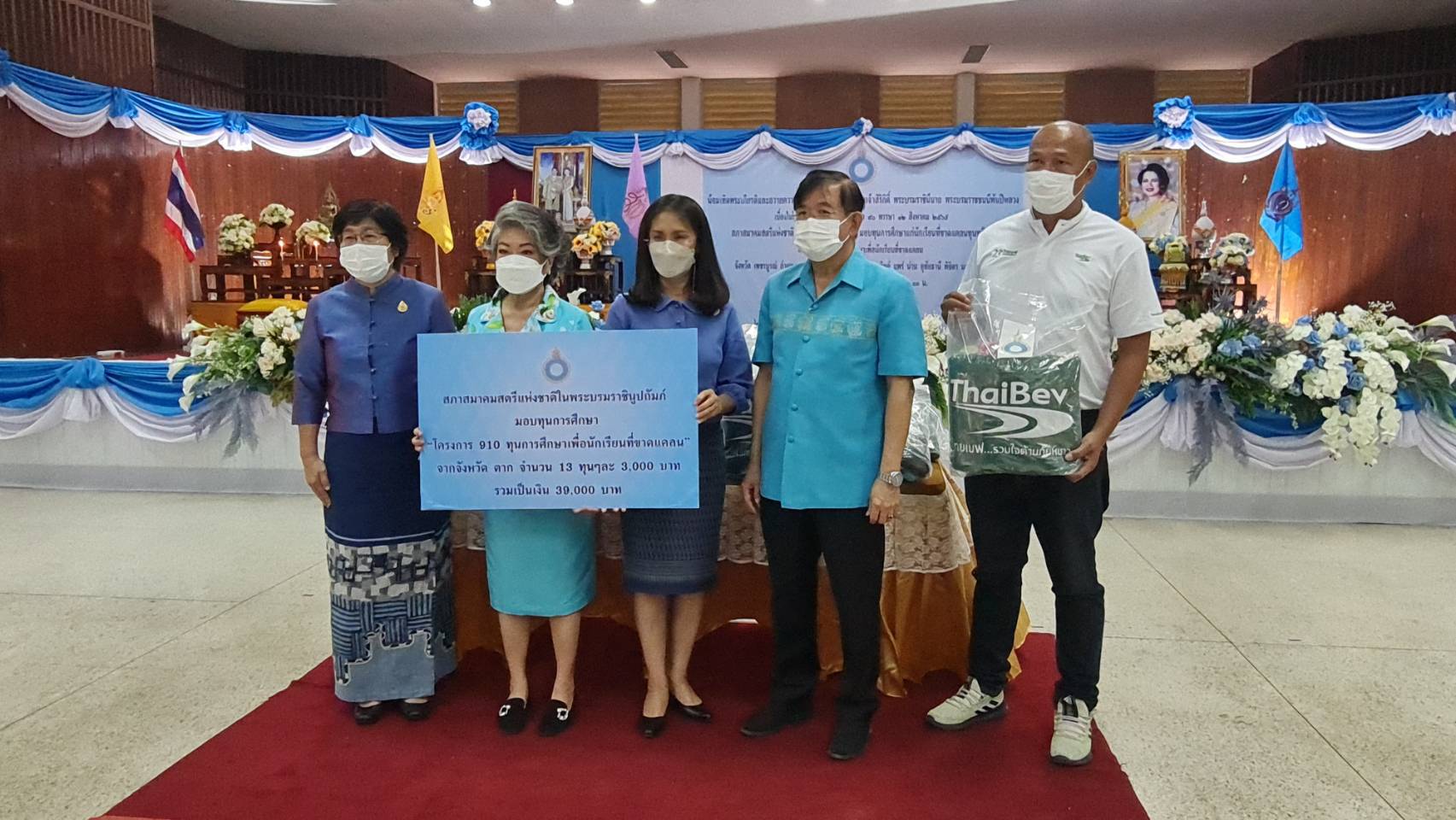 โดยประกอบพิธีจุดธูปเทียนบูชาพระรัตนตรัย เปิดกรวยถวายราชสักการะพระบรมฉายาลักษณ์ พระบาทสมเด็จพระเจ้าอยู่หัว เปิดกรวยถวายราชสักการะพระฉายาลักษณ์สมเด็จพระนางเจ้าสิริกิติ์ พระบรมราชินีนาถ พระบรมราชชนนีพันปีหลวง องค์อุปถัมภิกาสภาสตรีแห่งชาติในพระบรมราชินูปถัมภ์ พร้อมกล่าวถวายอาเศียรวาท และมอบทุนการศึกษาดังกล่าว ในการนี้บริษัท ไทยเบฟเวอเรจ จำกัด (มหาชน) ได้สนับสนุนผ้าห่มกันหนาวแก่ผู้รับทุนการศึกษาในครั้งนี้ด้วย