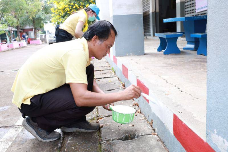 วันศุกร์ที่ 25 พฤศจิกายน 2565 เวลา 09.00 น. น.ส.นพมาศ อินจันทร์ หัวหน้าสำนักปลัดเทศบาล พร้อมพนักงานเทศบาลจิตอาสา และประชาชนจิตอาสาจากชุมชนเหมืองแดง จำนวน 40 คน ร่วมกิจกรรมจิตอาสาพัฒนาบำเพ็ญประโยชน์ เนื่องในวันสำคัญของชาติไทย ประจำปี 2565 “วันวชิราวุธ” วันคล้ายวันสวรรคต พระบาทสมเด็จพระมงกุฎเกล้าเจ้าอยู่หัว (รัชกาลที่ 6) เพื่อร่วมกันแสดงออกถึงความจงรักภักดี และสำนึกในพระมหากรุณาธิคุณเนื่องในโอกาสวันสำคัญของชาติไทย โดยการบำเพ็ญประโยชน์ล้างทำความสะอาดถนนและทาสีเส้นจราจร ณ บริเวณโรงเรียนเทศบาลวัดเหมืองแดง