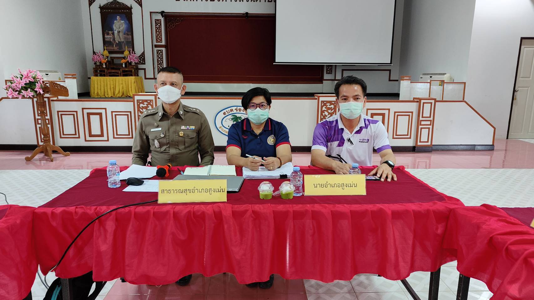 ในบ่ายวันเดียวกันนี้เวลา 13.00 น. อำนวยการโดย นายนคร สายยืด นายอำเภอสูงเม่น/ผอ.ศป.ปส.อ.สูงเม่น มอบหมายให้ฝ่ายความมั่นคงและสำนักงานสาธารณสุขอำเภอสูงเม่น บูรณาการร่วมกับเจ้าหน้าที่ตำรวจภูธรสูงเม่น อำนวยการภายใต้ พ.ต.อ.สุชาติ สิงห์ขรณ์ ผกก.สภ.สูงเม่น จ.แพร่ ,พ.ต.ท.มานพ ใจอุ่นรอง.ผกก.ป.สภ.สูงเม่น, เจ้าหน้าที่ตำรวจ สภ.สูงเม่น, ร่วมกันจัดทำโครงการป้องกันและแก้ไขปัญหาผู้ป่วยที่มีอาการทางจิตจากการใช้ยาเสพติดโดยการมีส่วนร่วมของชุมชน พื้นที่นำร่องอำเภอสูงเม่น จังหวัดแพร่ กิจกรรมที่ 3 ประชุมติดตามดูแลช่วยเหลือผู้ป่วยที่มีอาการทางจิตจากการใช้ยาเสพติดในพื้นที่หมู่บ้าน/ชุมชน และโครงการค้นหา ผู้ใช้ ผู้เสพ ผู้ติดยาเสพติด ผู้มีอาการป่วยทางจิตและผู้ป่วยจิตเวช เพื่อนำเข้าสู่การบำบัดรักษา ตามประมวลกฎหมายพระราชบัญญัติยาเสพติด และพระราชบัญญัติสุขภาพจิต กลุ่มเป้าหมายฯ คือ เจ้าหน้าที่ผู้ปฏิบัติงาน อปท./กำนันผู้ใหญ่บ้าน อ.สูงเม่น/จนท.รพ.สต./จนท.ตำรวจประจำตำบล แลงะประธาน อสม.จากทุกตำบล จำนวน 30 คน ณ หอประชุม องค์การบริหารส่วนตำบลร่องกาศ อำเภอสูงเม่น จังหวัดแพร่