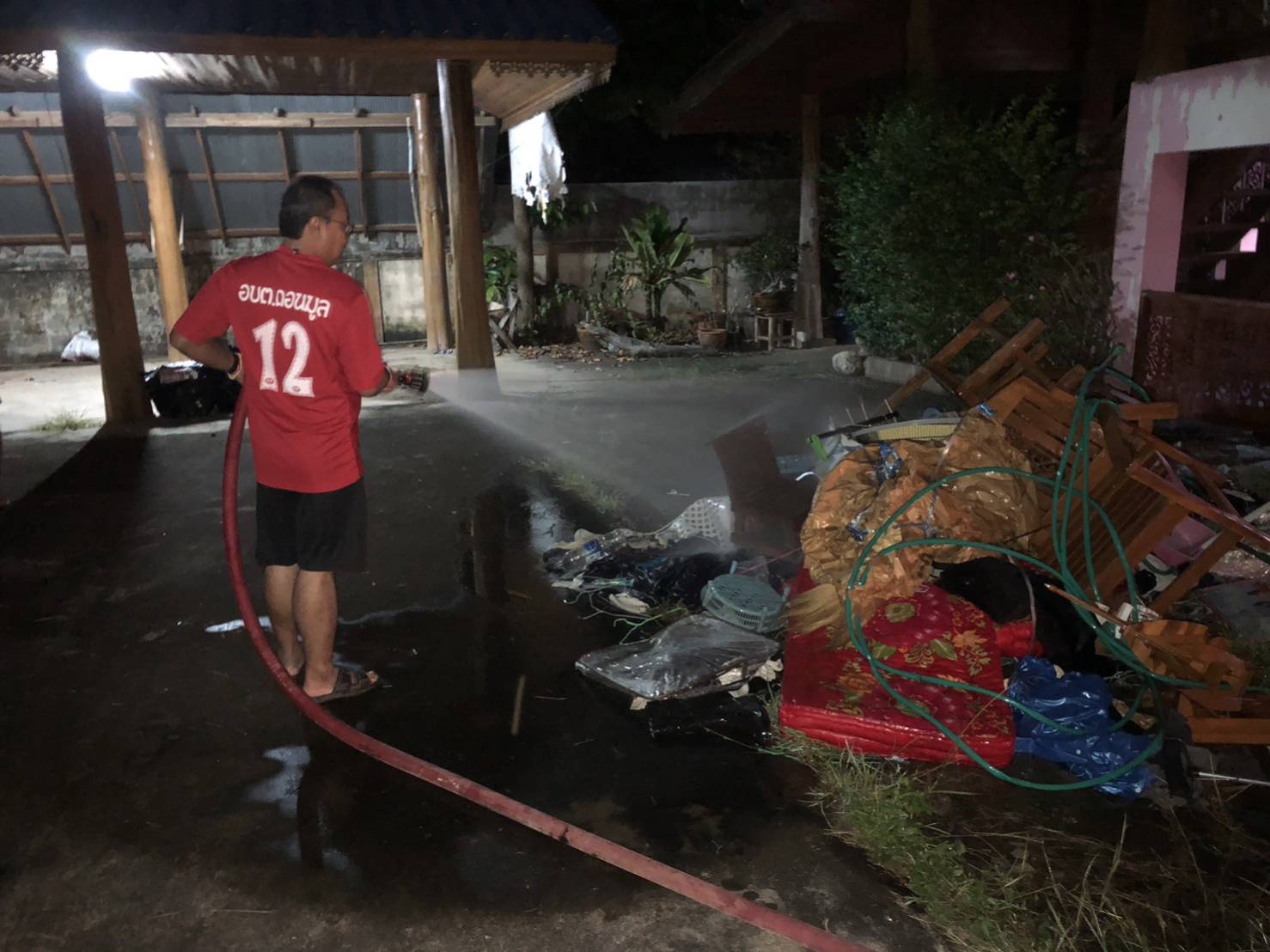 เข้าตรวจสอบ บ้านเลขที่ 3 ม.9 ต.ดอนมูล อ.สูงเม่น จ.แพร่ รับแจ้งว่า มีเหตุเพลิงไหม้ จึงได้ประสานรถบรรทุกน้ำ อบต.ดอนมูล เข้าพื้นที่ดังกล่าว ตรวจพบต้นเพลิงเกิดจาก นายณัฐพงษ์ (นามสมมุติ) เมาอาละวาด จุดไฟเผา และทำลายของใช้ภายในบ้าน เจ้าหน้าที่บรรเทาสาธารณภัย ต.ดอนมูล จึงได้ทำการฉีดพ่นน้ำระงับเพลิงดังกล่าว พร้อมกับฉีดรอบบริเวณบ้านหลังเกิดไว้เพื่อความปลอดภัย และไม่ให้ลุกลามและเจ้าหน้าที่ตำรวจ สภ.สูงเม่น ได้ควบคุมตัวผู้ก่อเหตุ ไปทำการสอบสวน สภ.สูงเม่นโดยเบื้องต้นทราบว่านายณัฐพงษ์ มีสติฟั่นเฟือนจากการใช้ยาเสพติดและมักจะคลุ้มคลั่งเป็นประจำจนกระทั่งจุดไฟเผาบ้านตนเองในครั้งนี้เดชะบุญเจ้าหน้าที่และชาวบ้านมาช่วยไว้ทันทำให้บ้านเสียหายบางส่วน