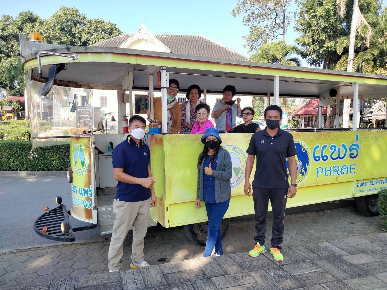 อบจ.แพร่ จึงจัดบริการ “รถราง” ให้กับนักท่องเที่ยว ฟรี ในการเที่ยวชมสถานที่ต่างๆ เช่น คุ้มเจ้าหลวง วัดพงษ์สุนันท์ วัดหลวง คุ้มวงศ์บุรี คุ้มวิชัยราชา ประตูชัย และวัดจอมสวรรค์