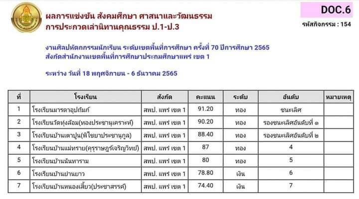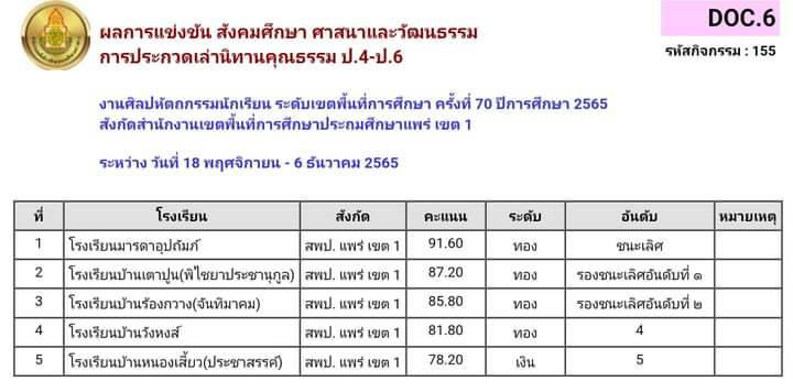 การแข่งขันสังคมศึกษา ศาสนาและวัฒนธรรม 9.ประกวดเล่านิทานคุณธรรม ป.1-ป.3/10. ประกวดมารยาทไทยป.4-ป.6/11. ประกวดเล่านิทานคุณธรรม ป.4-ป.6/12. ประกวดมารยาทไทย ป.1-ป.3