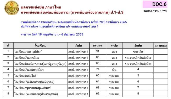 การแข่งขันภาษาไทย 1.การแข่งขันคัดลายมือสื่อภาษาไทย ป.1-ป.3 2.การแข่งขันเรียงถ้อยความ (การเขียนเรื่องจากภาพ) ป.1-ป.3