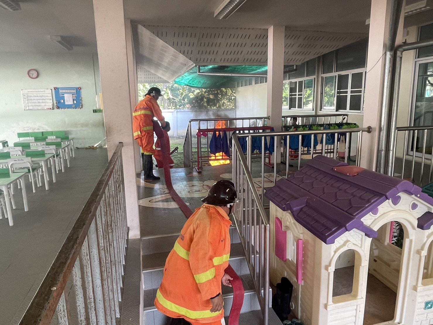 ทต.บ้านถิ่น ติวเข้มศูนย์พัฒนาเด็กเล็ก ซักซ้อมแผนหนีไฟและเผชิญเหตุ