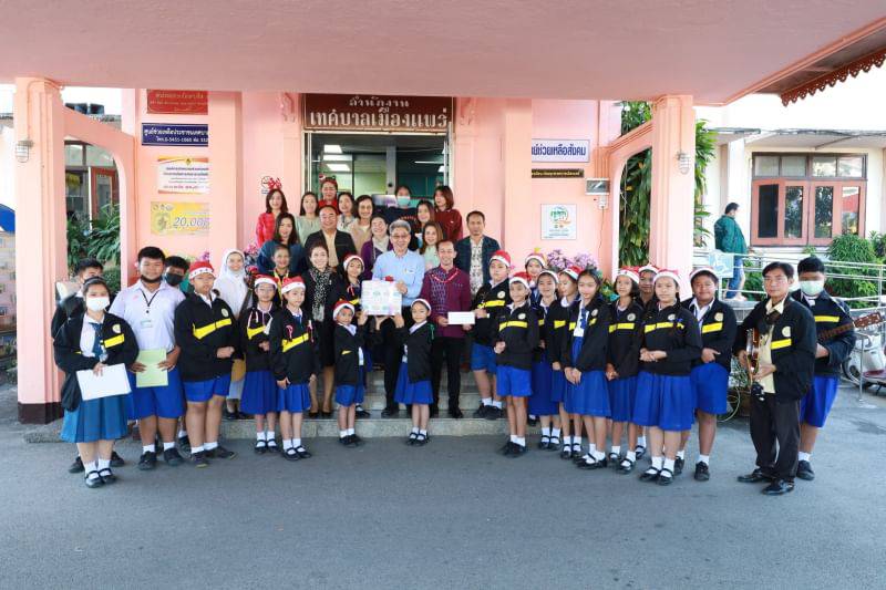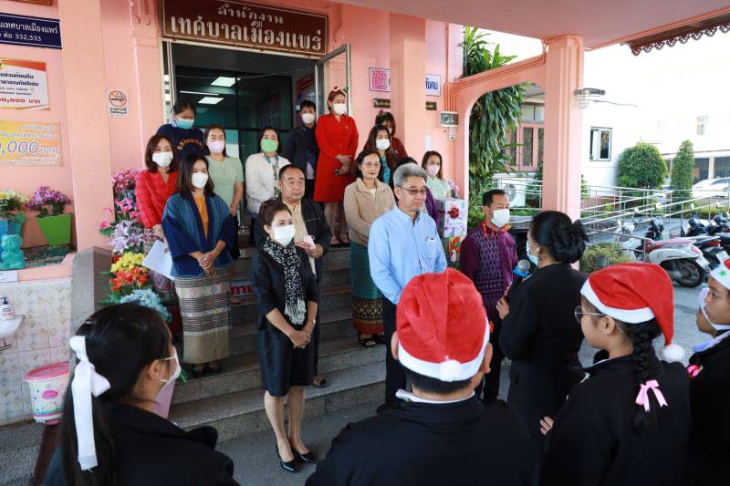 เทศบาลเมืองแพร่ รับมอบคำอวยพรและส่งความสุข จากโรง เรียนเทพพิทักษ์วิทยา และโรงเรียนเจริญราษฎร์ เนื่องในวันคริสต์มาส