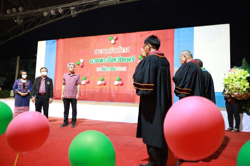วันเสาร์ที่ 24 ธันวาคม 2565 เวลา 17.30 น. นายโชคชัย พนมขวัญ นายกเทศมนตรีเมืองแพร่ ร่วมพิธีเปิด “ขบวนคริสต์มาสอวยพรจังหวัดแพร่” ประจำปีคริสต์ศักราช 2022 พร้อมทั้งกล่าวอวยพรแก่ผู้เข้าร่วมงาน เพื่อเป็นการเฉลิมฉลองเนื่องในวันประสูติของพระเยซูคริสต์เจ้า รวมทั้งรับคำอวยพรและส่งความสุขในช่วงเทศกาลวันคริสต์มาสและปีใหม่ โดยมีนายสมศักดิ์ สุขประเสริฐ นายอำเภอเมืองแพร่ เป็นประธานในพิธีเปิด ณ บริเวณข่วงวัฒนธรรมเมืองแป้ (กาดสามวัย)