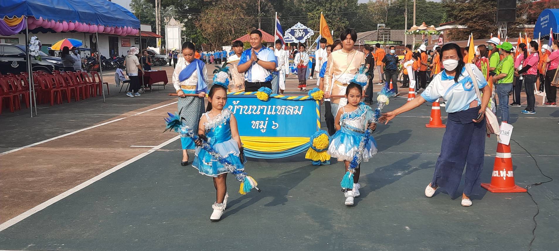 โดยมีนักกีฬาของแต่ละหมู่บ้านจำนวน 6 หมู่บ่านเข้าร่วมแข่งขัน มีริ้วขบวนพาเหรดได้เข้าสู่สนามอย่างสวยงามโดยได้รับความอนุเคราะห์จากว่าที่ ร.ต.วีรภัทร แก้วทอง ผอ.รร.นารีรัตน์จังหวัดแพร่จัดวงดุริยางค์นำขบวนนักกีฬา