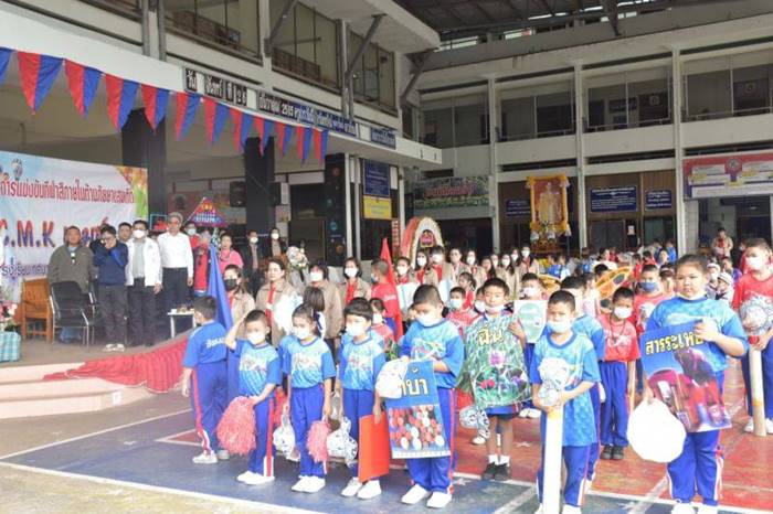วันจันทร์ที่ 26 ธันวาคม 2565 เวลา 8.30 น. โรงเรียนเทศบาลวัดชัยมงคล จัดกิจกรรมโครงการส่งเสริมศักยภาพกลุ่มสาระการเรียนรู้สุขศึกษาและพลศึกษา การแข่งขันกีฬาสีภายในสถานศึกษาต้านภัยยาเสพติด “CMK เกมส์” ประจำปี 2565 เพื่อให้นักเรียนได้แสดงออกถึงความสามารถทางด้านกีฬา ฝึกการทำกิจกรรมกลุ่ม รู้แพ้ รู้ชนะ รู้อภัย และห่างไกลยาเสพติด โดยมีนายโชคชัย พนมขวัญ นายกเทศมนตรีเมืองแพร่ เป็นประธานในพิธีเปิด พร้อมด้วยคณะผู้บริหาร สมาชิกสภาเทศบาลเมืองแพร่ รองปลัดเทศบาลเมืองแพร่ หัวหน้าส่วนราชการ คณะผู้บริหารสถานศึกษาและคณะครูในสังกัดเทศบาลเมืองแพร่ และส.อบจ.แพร่ เข้าร่วมกิจกรรมดังกล่าว ณ ลานกีฬาโรงเรียนเทศบาลวัดชัยมงคล ต.ในเวียง อ.เมือง จ.แพร่