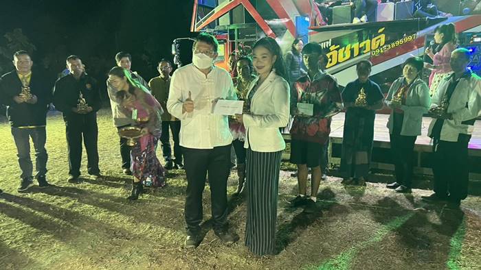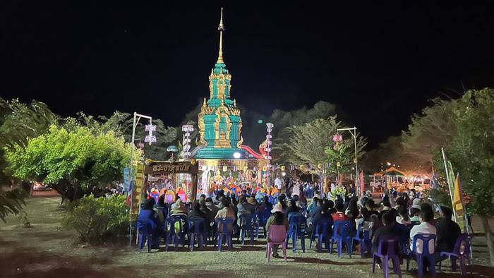 ในงานปีนี้มีมหรสพ เป็นการประกวดร้องเพลงลูกทุ่ง ของตัวแทนตำบล จาก 11 ตำบลของอำเภอร้องกวาง ชิงเงินรางวัลชนะเลิศหนึ่งหมื่นบาท เพื่อเป็นงบประมาณนำไปพัฒนาชุมชนสังคมหมู่บ้าน … มีรถเครื่องแห่จากภาคอีสาน ซึ่งได้รับการสนับสนุนคณะลูกศิษย์ ฯ มาช่วยด้านงานประชาสัมพันธุ์สร้างบรรยากาศ ร่วมแห่สลากภัต ในวันที่ 1 ม.ค. 66
