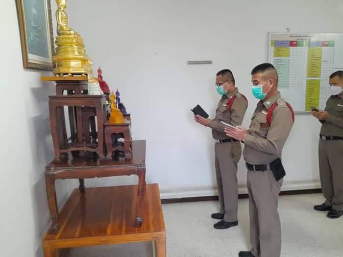 18. สภ.สรอย ประกอบพิธี ณ ซุ้มพระหน้าอาคารที่ทำการ สภ.สรอย
