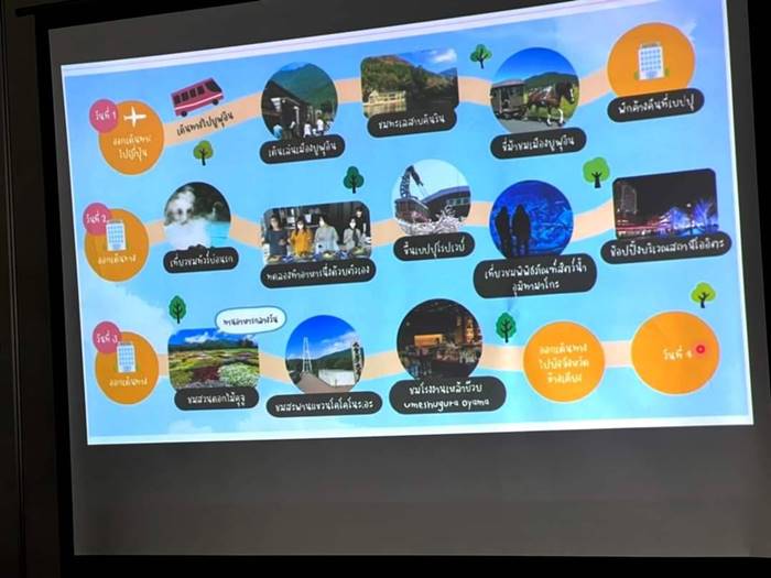 การมาครั้งนี้ ร่วมกับคณะกรรมาธิการการท่องเที่ยว สภาผู้แทนราษฎร และได้รับการต้อนรับจาก”พี่เปิ้ล สุภาพร” การท่องเที่ยวแห่งประเทศไทย สำนักงานฟุกุโอกะ และผู้บริหารจังหวัดโออิตะ ซึ่งเป็นการร่วมงานสัมมนาแลกเปลี่ยนแนวทางการท่องเที่ยวระหว่างไทยและญี่ปุ่น โดยเฉพาะเรื่องความร่วมมือหาแนวทางการเชื่อมโยงการท่องเที่ยว หรือ การเติมคนเข้าพื้นที่ท่องเที่ยวในท้องถิ่นระหว่างสองประเทศ