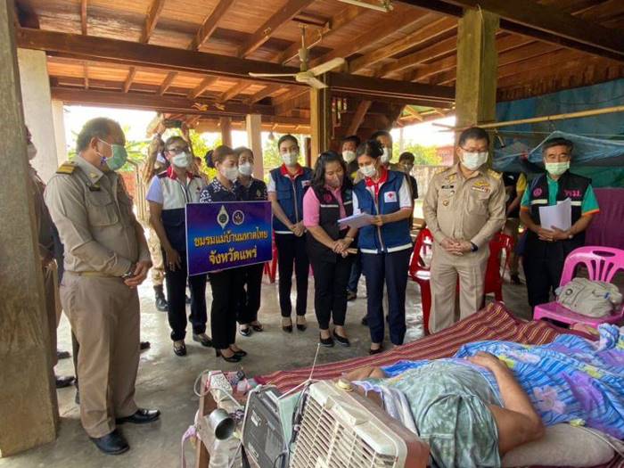 ทั้งนี้ ทางเหล่ากาชาดจังหวัดแพร่ และชมรมแม่บ้านมหาดไทยจังหวัดแพร่ได้มอบเงินทุนช่วยเหลือเพื่อการยังชีพ และสิ่งของจำเป็นเพื่อการยังชีพ แก่ผู้ป่วยด้อยโอกาสและยากไร้ทั้ง 2 รายด้วย