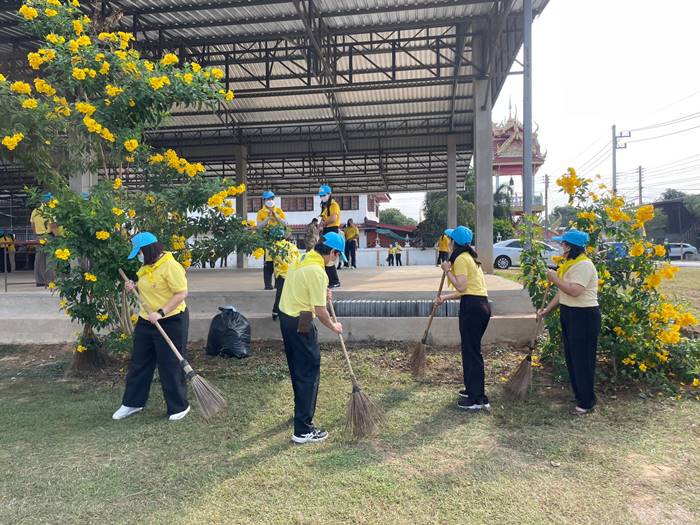 โดยประธาน ได้นำกล่าวคำปฏิญาณ “เราทำความดี ด้วยหัวใจ” พร้อมนำเหล่าจิตอาสาร่วมกันเก็บกวาดทำความสะอาด ปรับปรุงภูมิทัศน์บริเวณถนนหน้าและด้านข้างวัด