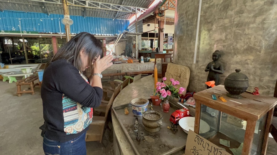 หลังรับแจ้งผู้สื่อข่าวจึงเดินทางไปยังวัดเด่นทัพชัย พบกับหญิงสาวคนหนึ่ง กำลังมาขอโชคกับได้ไข่ จึงได้สอบถาม ได้ความว่า ไปทำธุระที่ในตลาดเด่นชัย ได้ยินแม่ค้าแม่ขายพูดกันว่าที่วัดเด่นทัพชัย มีไอ้ไขให้โชคกับชาว อ.เด่นชัย มาหลายงวดแล้ว ตนจึงแวะเข้ามาขอโชคไอ้ไข่ โดยบูชาธูปและขอพรไอ้ไข่ธูปอันละ 19 บาท และมีตู้บริจาค ไอ้ไข่วัดเด่นทัพชัย จากการสังเกตมีความสูงประมาณ 50 ซ.ม.บริเวณรอยมีของเล่น หลายอย่างที่ชาวบ้านนำมาถวาย และเครื่องดื่ม ไอ้ไข่วัดเด่นทัพชัยดูแล้วน่าเกรงขามมาก
