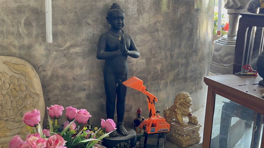 ทางด้าน พระครูปราโมช ชัยน์ทัศย์ เจ้าอาวาสวัดเด่นทัพชัย เจริญพรกับผู้สื่อข่าวว่า ไอ้ไข่ที่ทางวัดได้มาไม่ทราบว่า เป็นไอ้ไข่มาจากที่ใด จังหวัดไหนแต่ทางวัดเด่นทัพชัย ได้มาจากวัดไผ่ล้อม จ.อุตรดิตถ์ โดยเจ้าอาวาสวัดไผ่ล้อม ซึ่งอาตมาไปปฏิบัติศาสนกิจที่วัดไผ่ล้อม ได้สอบถามว่า มีไอ้ไข่ที่เจ้าของเขาเสียชีวิตและลูกหลานนำมาไว้ที่วัด อยากได้ไหม อาตมาเห็นว่า เรื่องราวของไอ้ไข่ให้โชคลาภ ถ้านำมาไว้วัดบ้างก็น่าจะดี ดึงชาวบ้านเข้าวัด และทางวัดไผ่ล้อมยังมอบพระพิฆเนศให้มาอีกองค์
