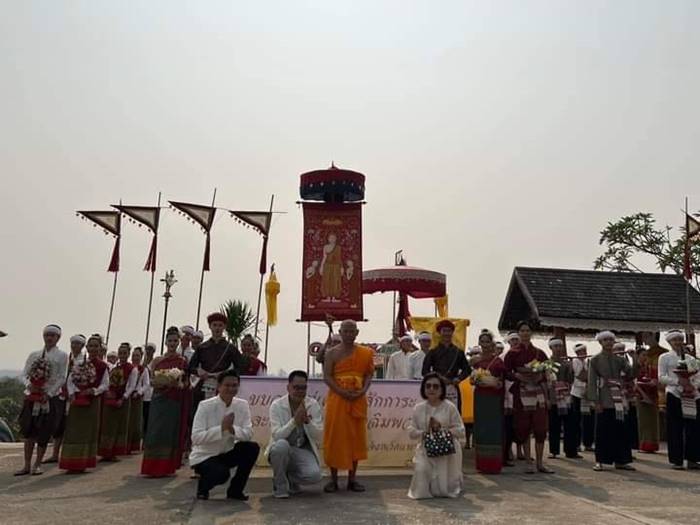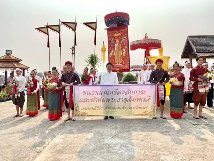 วัดจอมคีรีชัย บวงสรวงและห่มผ้าองค์พระธาตุฉิมพวลี แห่เครื่องสักการะ ถวายหอระฆัง