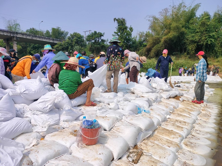 สำหรับการสร้างฝายชะลอน้ำ บริเวณลำน้ำยม หมู่ที่ 3 ตำบลสบสาย ซึ่งมีขนาดความสูง 1 เมตร สันฝายกว้าง 4 เมตร ความยาว 80 เมตรในวันนี้ ใช้กระสอบบรรจุทรายและนำมาวางเรียงกันกลางลำน้ำ เพื่อชะลอการไหลของน้ำและให้ลำน้ำแม่ยมมีน้ำกักเก็บไว้ให้มากที่สุด และค่อยๆไหลลงสู่แหล่งน้ำอย่างช้าๆ เพื่อให้ประชาชนในพื้นที่ได้ใช้น้ำอุปโภค-บริโภค ปลูกผัก ทำการเกษตร ไม่ขาดแคลนในช่วงฤดูแล้งนี้