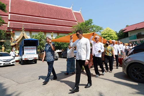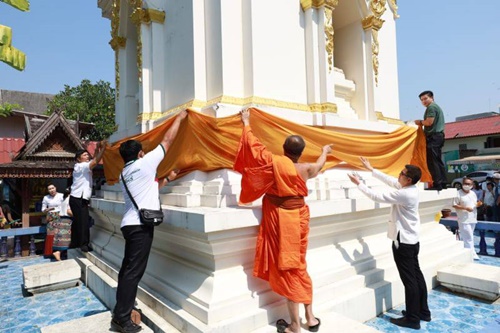 วันพุธที่ 29 มีนาคม 2566 เวลา 08.40 น. นายโชคชัย พนมขวัญ นายกเทศมนตรีเมืองแพร่ พร้อมด้วยสมาชิกสภา ปลัดเทศบาล หัวหน้าส่วนราชการ พนักงานเทศบาล คณะผู้บริหารสถานศึกษาและคณะครูโรงเรียนในสังกัดเทศบาลเมืองแพร่ ประธานชุมชนและประชาชนจากชุมชนเหมืองหิตพัฒนา เข้าร่วมพิธีห่มผ้าพระธาตุ ณ วัดต้นธง ตำบลในเวียง อำเภอเมืองแพร่ ทั้งนี้โครงการห่มพระธาตุวัดในเขตเทศบาลเมืองแพร่ จัดขึ้นโดยมีวัตถุประสงค์ เพื่อทำนุบำรุงและสืบทอดพระพุทธศาสนา เจริญบุญกุศลในธรรมและจรรโลงคุณงามความดี ตลอดจนเป็นการรักษาศิลปวัฒนธรรม จารีตประเพณีอันดีงามของท้องถิ่นที่ปฏิบัติสืบต่อกันมาช้านานให้คงอยู่สืบไป