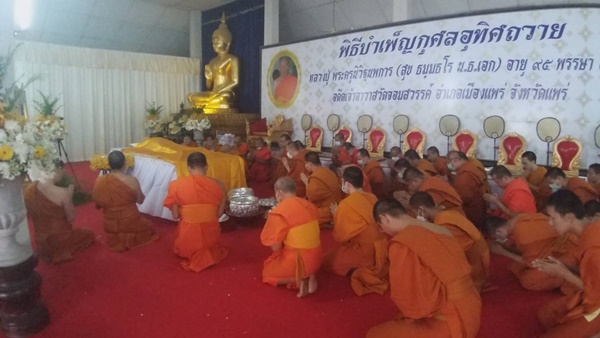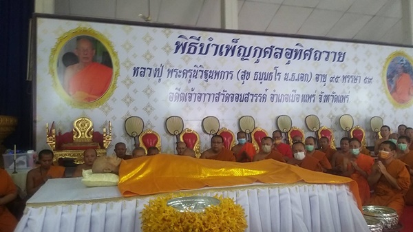 คณะสงฆ์จังหวัดแพร่ ร่วมกับพุทธศานิกชน คณะศรัทธาวัดจอมสวรรค์ ร่วมพิธีสรงน้ำสะลีระสังขารและพิธีสรงน้ำพระราชทานศพ หลวงปู่ พระครูนิวิฐนพการ (ตุ๊ลุงสม) อายุ 95 ปี พรรษา 59 อดีตเจ้าอาวาสวัดจอมสวรรค์ ต.ในเวียง อ.เมืองแพร่