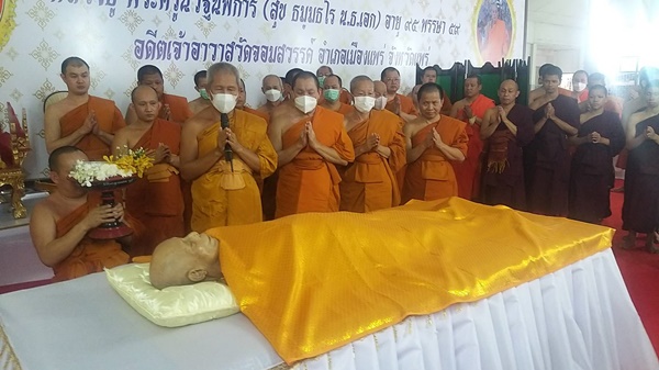 โดยจะมีพิธีบำเพ็ญกุศลตั้งแต่วันที่ 3-5 เม.ย. 66 เป็นจำนวนสามวัน ก่อนปิดศพไว้ เนื่องจากใกล้เทศกาลสงกรานต์ ส่วนกำหนดการพิธีบำเพ็ญกุศลครั้งต่อไป ทางคณะศรัทธาวัดจอมสวรรค์ จะแจ้งให้ทราบต่อไป