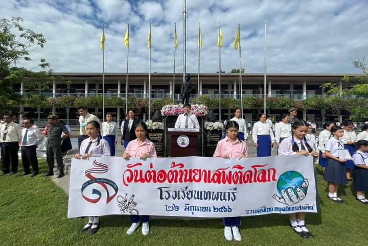 เมื่อวันที่ 26มิถุนายน 2566ที่โรงเรียนเทพนารี อ.สูงเม่น จ.แพร่นายสิทธิเดช พันธุ์นิติพงศ์ ผู้จัดการโรงเรียนเทพนารี นำผู้บริหาร คณะครูและนักเรียน จัดกิจกรรม “วันต่อต้านยาเสพติดโลก” อ่านสารรัฐมนตรีว่าการกระทรวงศึกษาธิการ เนื่องในวันต่อต้านยาเสพติดโลก (26 มิถุนายน) ประจำปี 2566