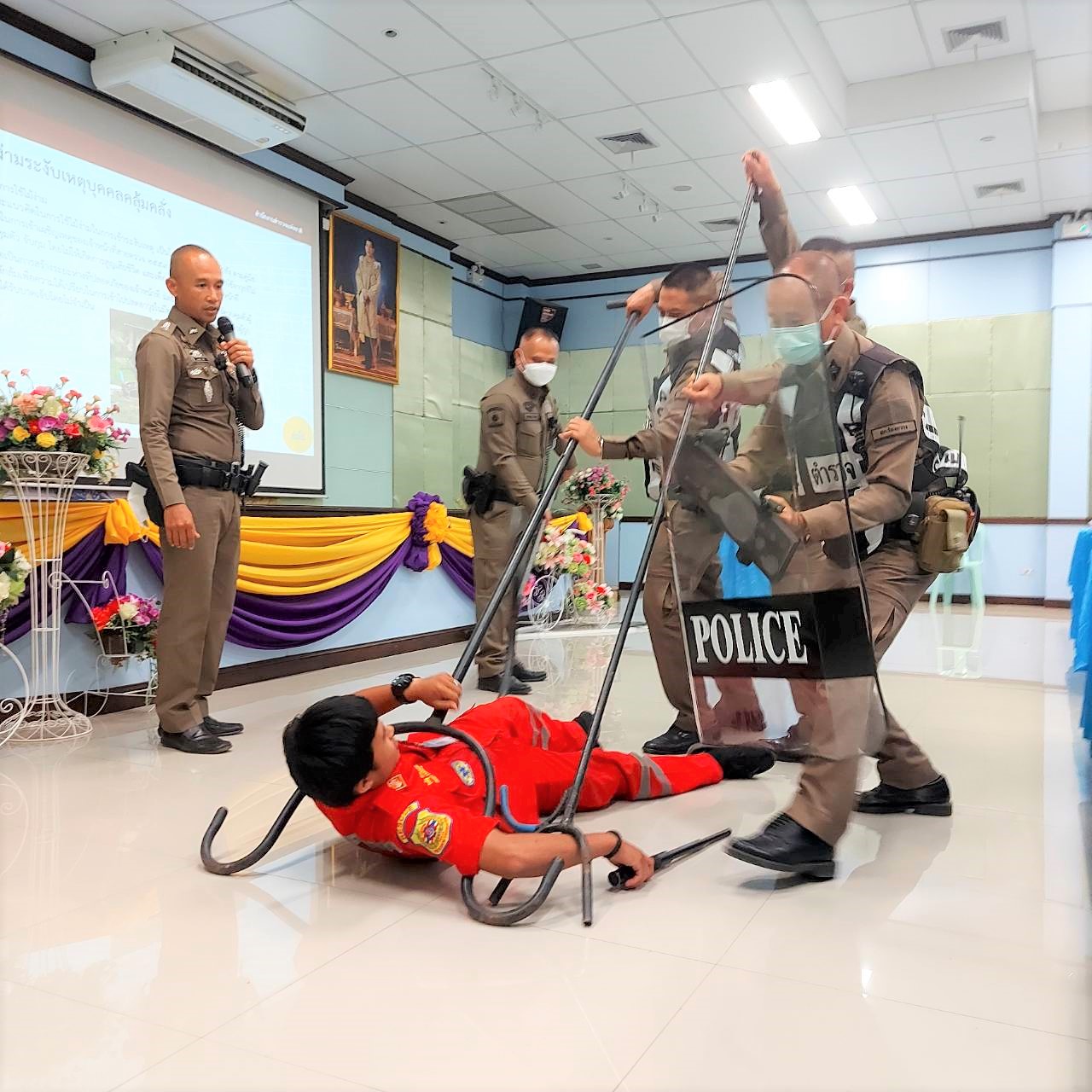 โดยแบ่งเป็นการบรรยายหัวข้อการเจรจาต่อรองในภาวะวิกฤตและเทคนิคการใช้อุปกรณ์ไม้ง่ามในการเข้าระงับเหตุผู้ก่อความรุนแรง ทีมวิทยากรเจ้าหน้าที่ตำรวจ สภ.ร้องกวาง และการบรรยายหัวข้อ การบูรณาการแนวทางการดูแลส่งต่อ ผู้ป่วยจิตเวชในพื้นที่และซ้อมแผนจัดการดูแลส่งต่อผู้ป่วยจิตเวชคลุ้มคลั่ง (บนโต๊ะ) โดยนางบุศยา วิทยาอารีย์กุล พยาบาลวิชาชีพชำนาญการ โรงพยาบาลสวนปรุง และคณะ เป็นวิทยากร ณ ห้องประชุมผานางคอย โรงพยาบาลร้องกวาง อำเภอร้องกวาง จังหวัดแพร่ ทั้งนี้เพื่อลดอุบัติการณ์ความรุนแรง สร้างเครือข่ายในการจัดตั้งทีมและจัดทำแผนบริหารเหตุการณ์วิกฤตแบบบูรณาการซึ่งจะช่วยให้ประชาชนกลุ่มเสี่ยงเข้าถึงบริการและได้รับการดูแลเฝ้าระวังอย่างต่อเนื่อง