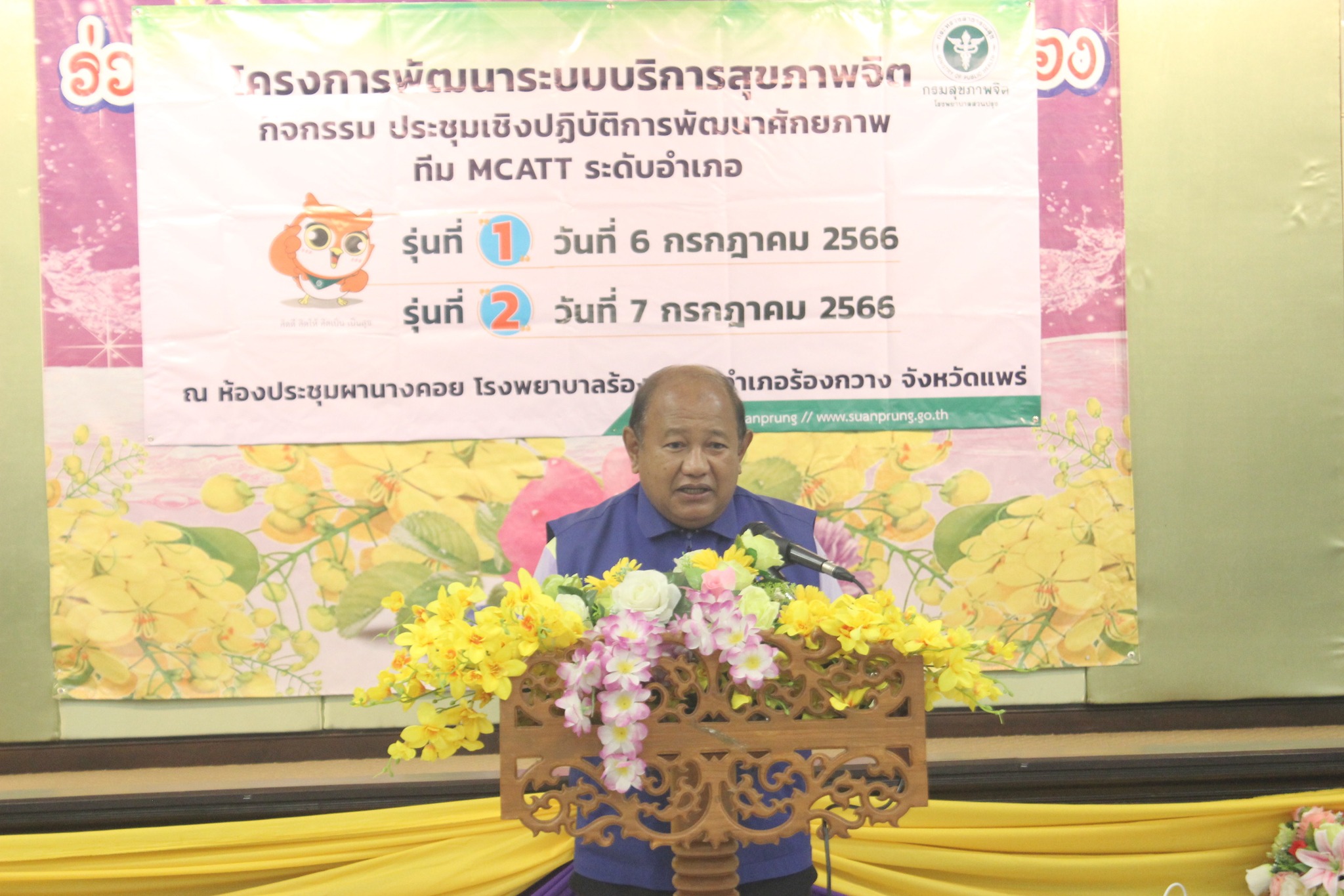 วันที่ 6 กรกฎาคม 2566 โรงพยาบาลสวนปรุง ร่วมกับ โรงพยาบาลร้องกวาง จัดโครงการประชุมเชิงปฏิบัติการ “ซ้อมแผนเผชิญเหตุสถานการณ์วิกฤตฉุกเฉินด้านสุขภาพจิต จังหวัดแพร่ รุ่นที่ 1” สำหรับ เจ้าหน้าที่สาธารณสุข ผู้นำชุมชน เจ้าหน้าที่ตำรวจ และกู้ชีพ กู้ภัย ในอำเภอร้องกวาง จังหวัดแพร่ จำนวน 100 คน โดยมี นายสมเกียรติ อาจสังข์ นายอำเภอร้องกวาง เป็นประธานเปิดงาน นายแพทย์รุ่งกิจ ปินใจ ผู้อำนวยการโรงพยาบาลร้องกวาง กล่าวรายงาน