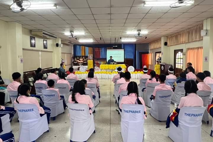 นายสิทธิเดช พันธุ์นิติพงศ์ ผู้จัดการโรงเรียนเทพนารี อ.สูงเม่น จ.แพร่ เปิดโครงการประชุมเชิงปฏิบัติการ ขับเคลื่อนโรงเรียนต้นแบบแกนนำนักเรียน ตระหนักรู้ รู้เท่าทันภัยเครื่องดื่มแอลกอฮอล์ บุหรี่ไฟฟ้าและปัจจัยเสี่ยงอื่นๆ ให้กับนักเรียนนักเรียนระดับชั้นมัธยมศึกษาตอนต้น ของสำนักงานกองทุนสนับสนุนการสร้างเสริมสุขภาพ(สสส.) ณ ห้องประชุมสว่างศรี โรงเรียนเทพนารี วันที่ 21 สิงหาคม 2567