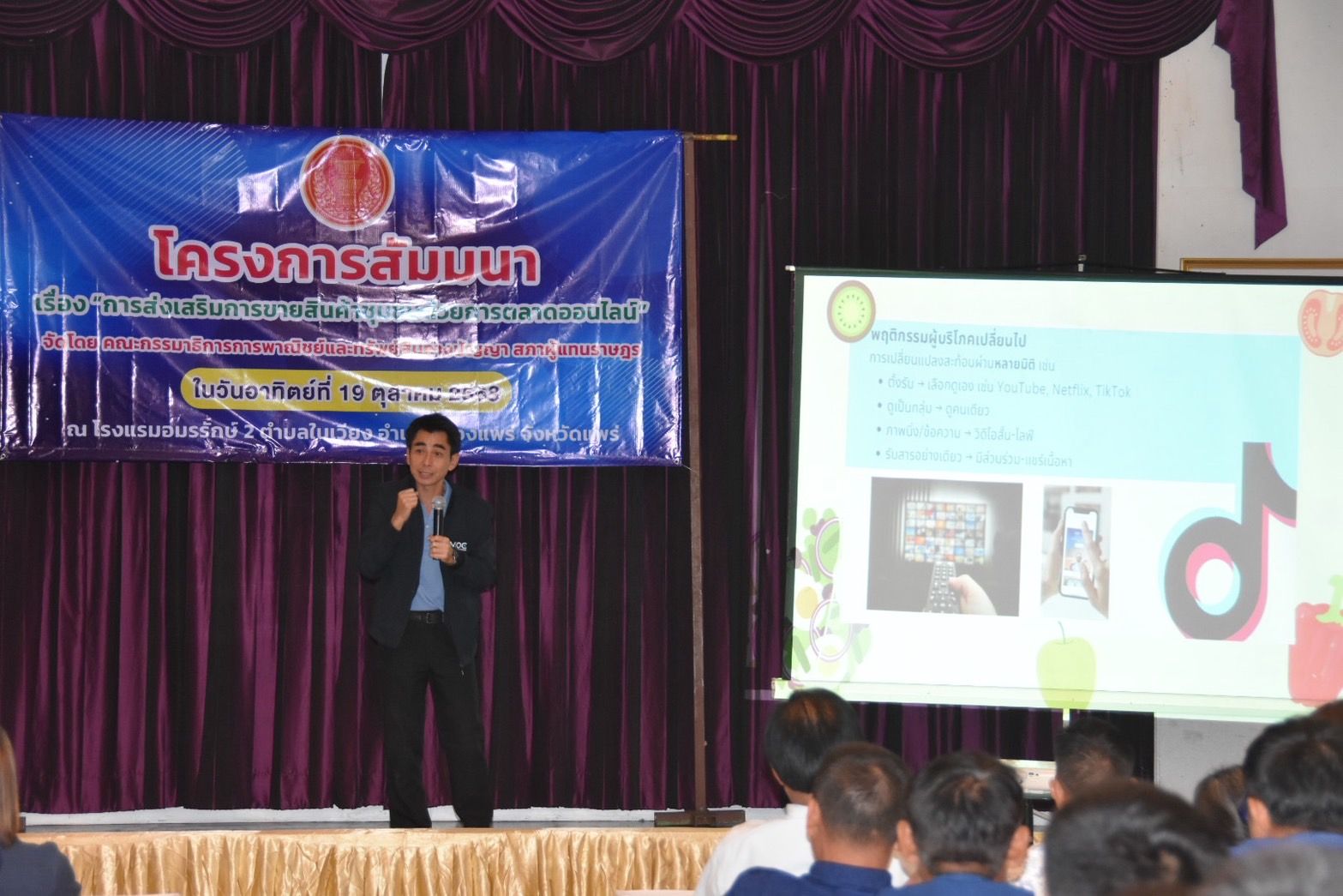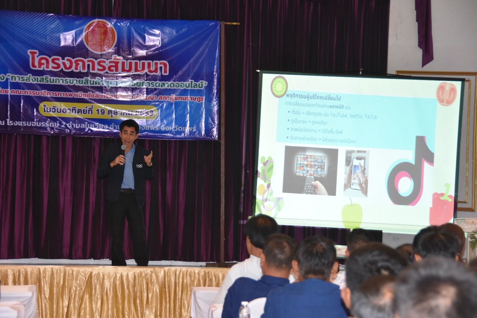 ในการนี้ นายศุภสัณห์ ศิลป์ชูศรี พาณิชย์จังหวัดแพร่ มอบหมายให้ นายศิวะ พรหมวิหาร หัวหน้ากลุ่มยุทธศาสตร์และแผนงาน ร่วมเป็นวิทยากรบรรยาย เรื่อง “การส่งเสริมการขายสินค้าชุมชนด้วยการตลาดออนไลน์” ซึ่งได้ให้ความรู้ด้านการตลาดออนไลน์ การสร้างมูลค่าเพิ่มให้สินค้า รวมถึงแนวทางขยายช่องทางจำหน่ายผ่านแพลตฟอร์มดิจิทัล มุ่งหวังเพิ่มขีดความสามารถทางการแข่งขัน และสร้างรายได้ให้แก่เศรษฐกิจฐานรากของจังหวัดแพร่ โดยมีผู้ประกอบการฯ เข้าร่วมสัมมนาฯ จำนวน 430 ราย