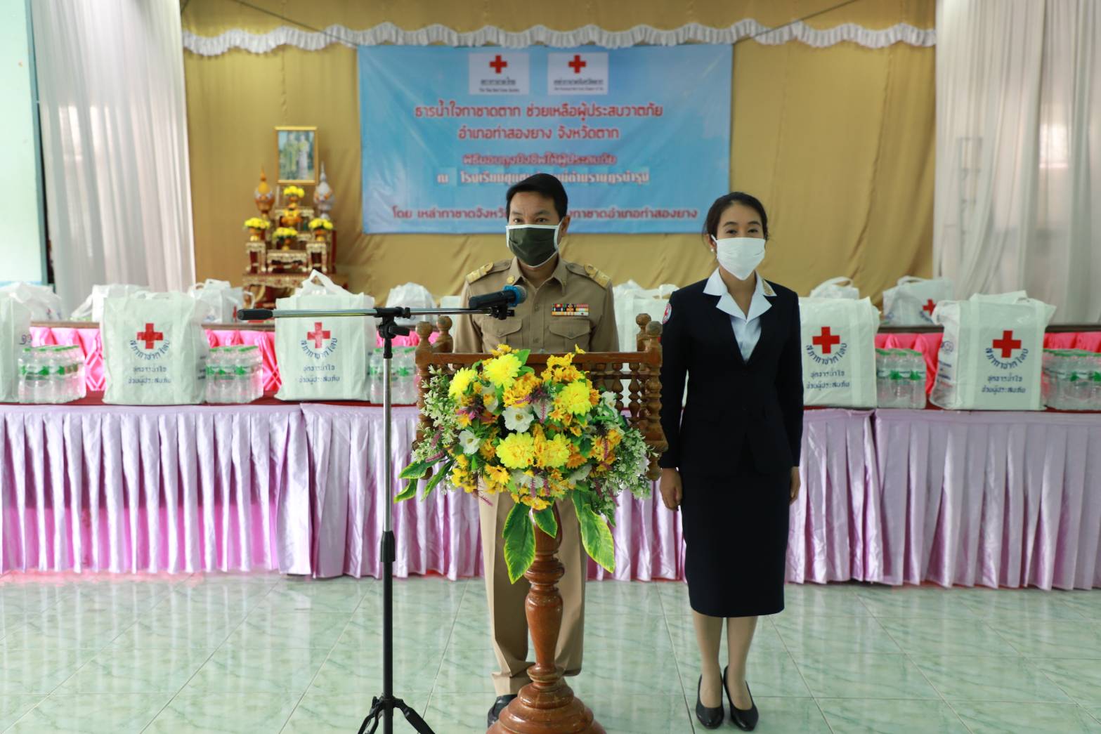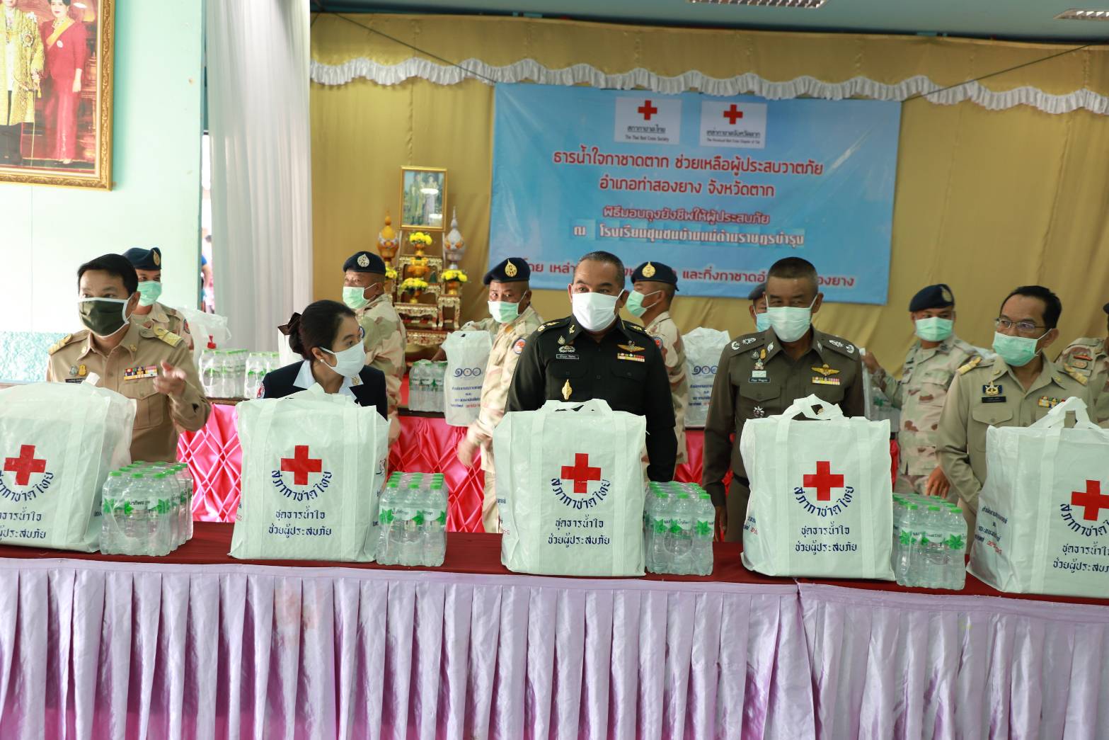 วันที่ 12 มิ.ย. 2563 นายอรรษิษฐ์ สัมพันธรัตน์ ผู้ว่าราชการจังหวัดตาก พร้อมด้วย นางจิณณารัชช์ สัมพันธรัตน์ นายกเหล่ากาชาดจังหวัดตาก ลงพื้นที่ให้กำลังใจและมอบถุงยังชีพ จำนวน 202 ชุด ให้แก่ผู้ประสบวาตภัยในพื้นที่ตำบลแม่ต้าน อำเภอท่าสองยาง เพื่อช่วยเหลือและบรรเทาความเดือดร้อนในเบื้องต้น โดยมี นายอำเภอท่าสองยาง ส่วนราชการระดับอำเภอ ผู้บริหารองค์กรปกครองส่วนท้องถิ่น ผู้นำท้องที่/ท้องถิ่น และประชาชนในพื้นที่ ให้การต้อนรับ ณ หอประชุมโรงเรียนบ้านแม่ต้าน