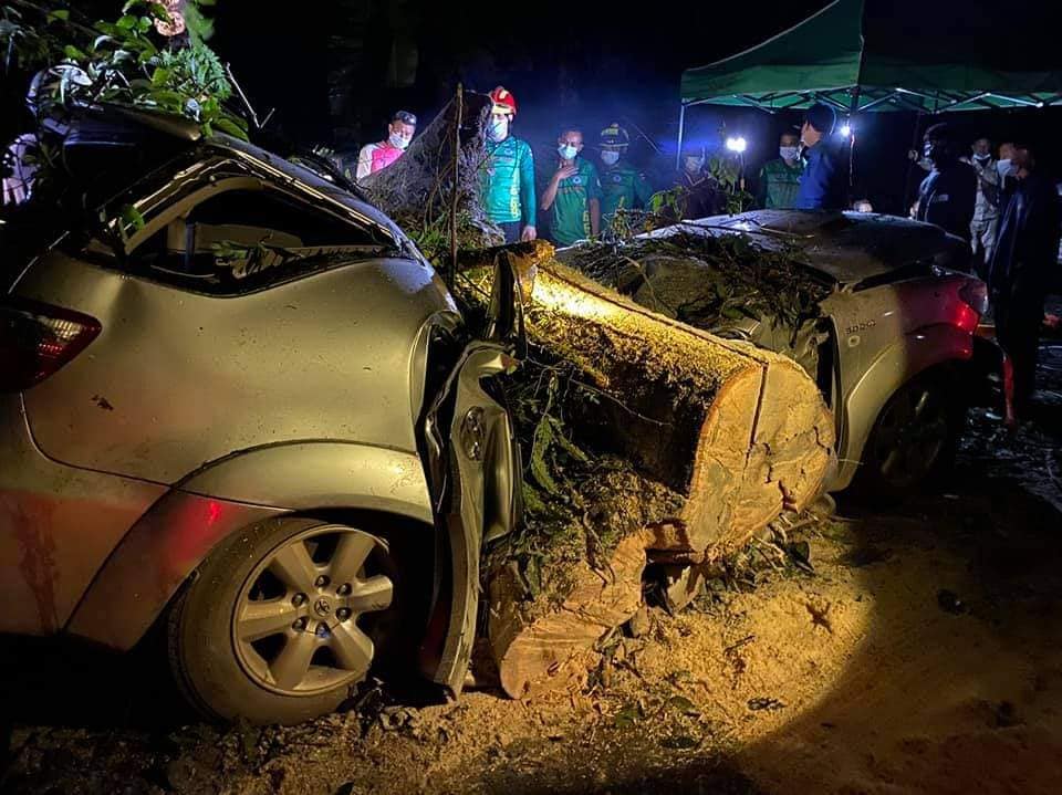 เมื่อเวลา 01.10 น.วันที่ 11 มิ.ย 2564 กู้ชีพ อ.อุ้มผาง จ.ตาก ได้รับแจ้งเหตุเกิดเหตุต้นไม้ขนาดใหญ่ล้มทับรถยนต์มีผู้บาดเจ็บ และรถเสียหายทั้งคัน ริมถนนสายแม่สอด-อุ้มผาง ช่วงหลักกิโลเมตรที่ 118 ต.โมโกร อ.อุ้มผาง จ.ตาก เจ้าหน้าที่กู้ภัยดังกล่าว พร้อมฝ่ายปกครอง อ.อุ้มผาง ตำรวจ และแขวงทางหลวงตากที่ 2 ร่วมกันเดินทางตรวจสอบ