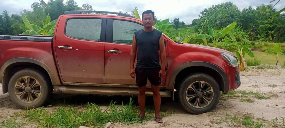 นายสายัณห์ วงศ์ใจ อยู่บ้านเลขที่ 346 หมู่ 9 ต.มหาวัน อ.แม่สอด จ.ตาก ซึ่ง มาทำไร่ทำสวนในบ้านวาเล่ย์ โดยนำรถยนต์กะบะมาจอดอยู่ในสวน ถูกสังเก็ดระเบิดได้รับความเสียหาย ทางด้านแถบข้างขวาคนขับ กล่าวว่า รถยนต์กระบะของตนเองถูกยิงสาดเข้ามาเลย เป็นลักษณะถูกสะเก็ดระเบิดจากเครื่องบินที่บินยังโจมตี โดยจุดที่รถยนต์ของตนเองจอดนั้น ห่างจากชายแดนประมาณ 1 กิโลเมตร ซึ่งเครื่องบินเมียนมานั้น ยังบินผ่านเข้าไปในตัวเมือง อ.พบพระ อีกด้วย ระหว่างที่เครื่องบินหญิงโจมตีนั้น ตนเองอยู่ในสวนปาล์มได้ยินเสียงดังสนั่นชัดเจนมาก