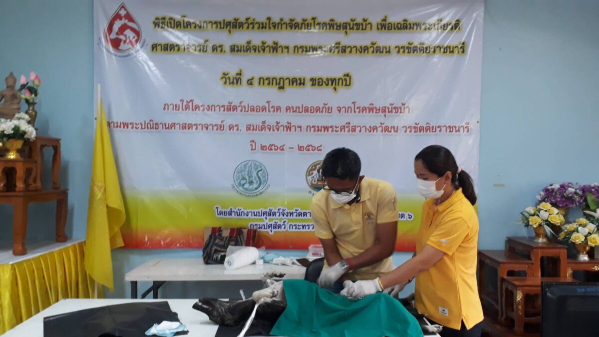 ตามพระปณิธานฯ ประจำปีงบประมาณ 2565 ประกอบด้วยกิจกรรมผ่าตัดทำหมันสุนัขและแมว ฉีดวัคซีนป้องกันโรคพิษสุนัขบ้าให้กับสุนัขและแมว รวมถึงการประชาสัมพันธ์ให้ความรู้กับเจ้าของสัตว์และประชาชนทั่วไป เกี่ยวกับการป้องกันโรคพิษสุนัขบ้า ณ ห้องประชุมองค์การบริหารส่วนตำบลยกกระบัตร ตำบลยกกระบัตร อำเภอสามเงา จังหวัดตาก โดยมี นายภัทรชนน์ บุญมี นายกองค์การบริหารส่วนตำบลฯ และข้าราชการพนักงานให้การต้อนรับ