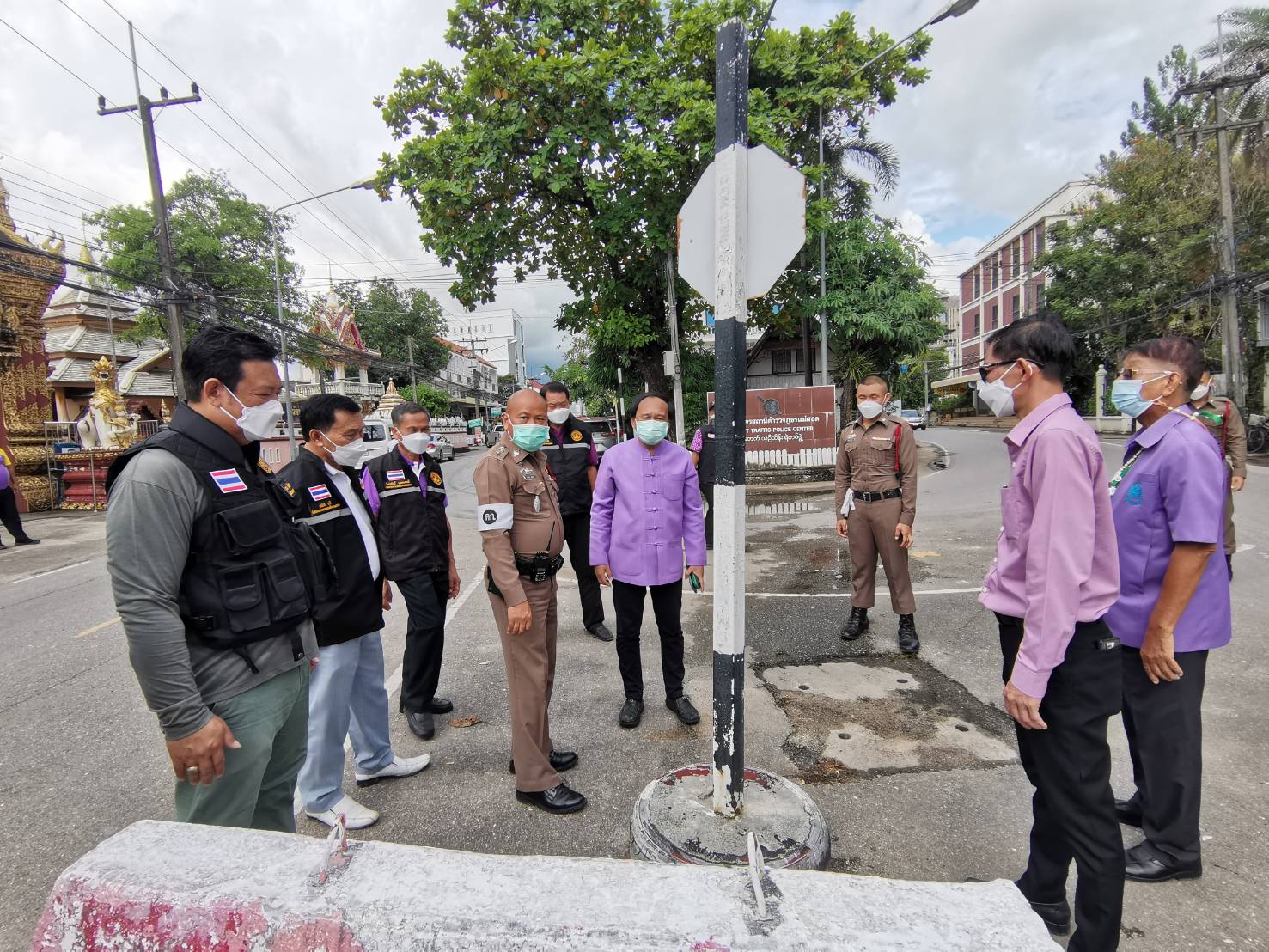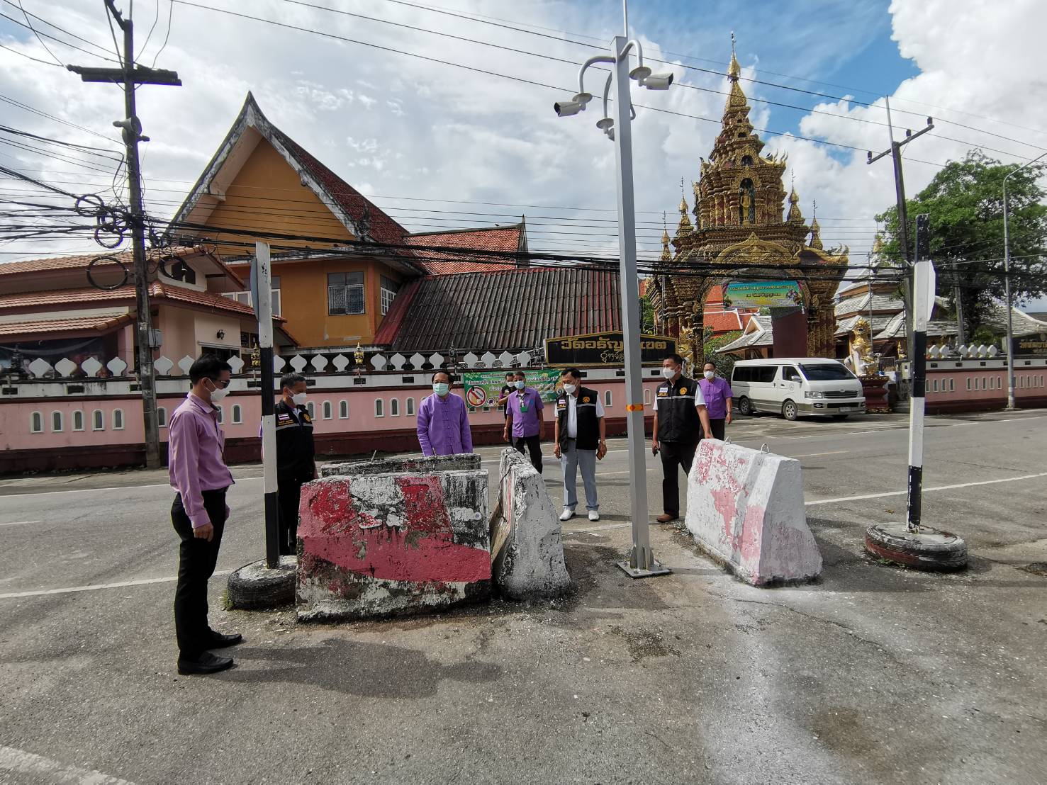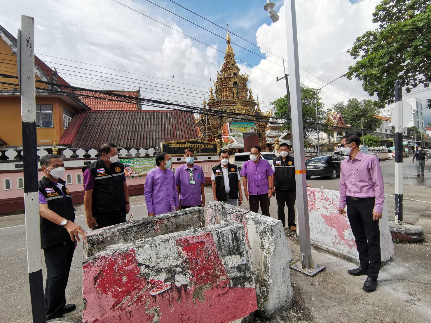 นายก ทน.แม่สอด ลงพื้นที่ตรวจแบริเออร์ ที่สามแยกวัดอรัญเขต