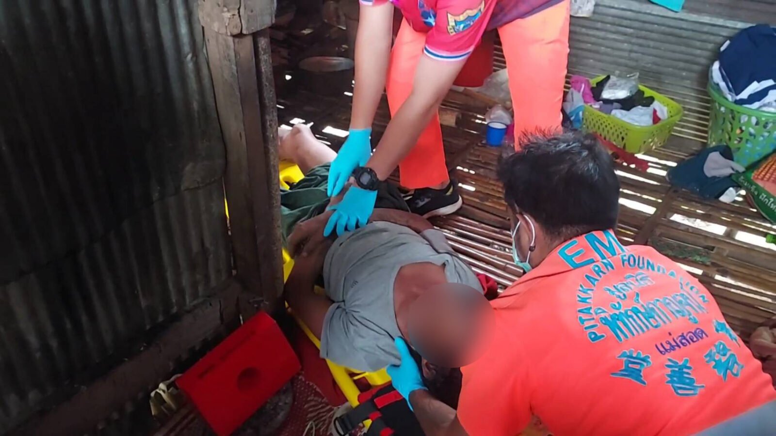 จากการสอบถามนายอะยอง อายุ55 ปี เพื่อนของผู้บาดเจ็บ เล่าว่า ก่อนเกิดเหตุนายอะมิชักชวนตนไปตกปลาสระน้ำกลางป่า โดยนายอะมิได้ปิ่นขึ้นต้นไม้สูงประมาณ 7 เมตร ที่อยู่ริมขอบสระน้ำ เพื่อจะย่อนเบ็ดตกปลากลางสระน้ำ ระหว่างนั้นนนายอะมิได้ใช้เท้าเหยียบกิ่งไม้ จึงหักตกลงมานอนอยู่กับพื้นดินจนหมดสติโดยไม่รู้สึกตัว เมื่อตนเห็นดังกล่าว จึงได้ช่วยเหลือนำนายอะมิไปนอนอยู่ในกระท่อม ก่อนที่รีบแจ้งให้เจ้าหน้าที่หน่วยกู้ภัยมารับนายอะมิส่งโรงพยาบาล