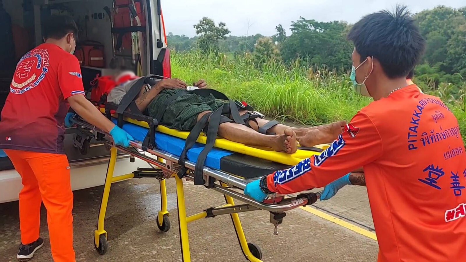 หนุ่มปีนขึ้นต้นไม้หวังจะหย่อนเบ็ดตกปลา กลางสระน้ำ แต่เหยียบกิ่งไม้หักตกลงมาบาดเจ็บสาหัส