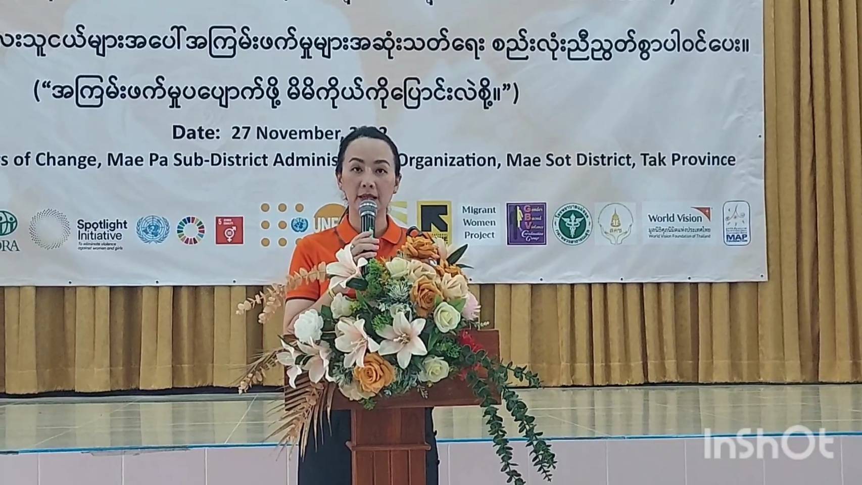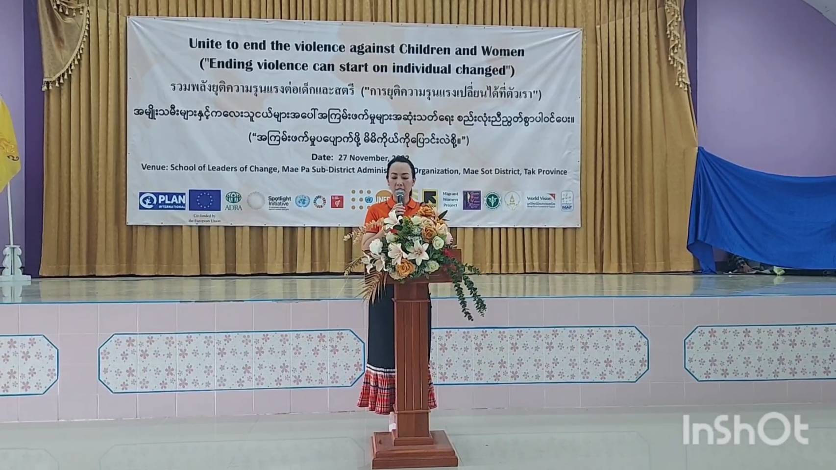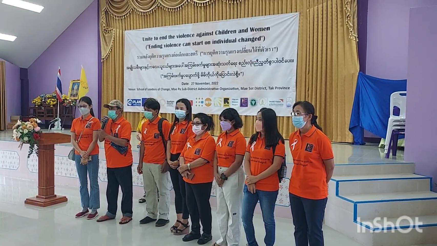เมื่อเวลา 09.00 น. วันที่ 27 พฤศจิกายน 2565 ที่โรงเรียนผู้นำแห่งการเปลี่ยนแปลง หมู่ที่ 2 ต.แม่ปะ อ.แม่สอด จ.ตาก นางสาวธนชพร ต๊ะทองคำ นายกองค์การบริหารส่วนตำบลแม่ปะเป็นประธานเปิดกิจกรรม “ โครงการพลังยุติความรุนแรงต่อเด็กและสตรี “ ประจำปี 2565 โดยมี นายแพทย์พิพัฒ เคลือบวัง รองผู้อำนวยการโรงพยาบาลแม่สอดและนางปิยนาฏ เสงี่ยมศักดิ์ พัฒนาสังคมและความมั่นคงของมนุษย์จังหวัดตาก ตลอดจน ประชาชนในชุมชน และ แรงงานข้ามชาติเข้าร่วมกิจกรรมฯ กว่า 200 คน โดยภายในกิจกรรมดังกล่าว จัดให้มีการแสดงบนเวที โดยมีตัวแทนจากกลุ่มผู้สูงอายุในชุมชนและกลุ่มเด็กเยาวชน จัดให้มีการเดินชมบูธของแต่ละบูธ เพื่อให้ผู้เข้าร่วมได้รับรู้และตระหนักถึงความรุนแรงต่อเด็กและสตรีรวมถึงช่องทางการประสานช่วยเหลือส่งต่อผู้เสียหายเพื่อให้เข้าถึงความช่วยเหลือคุ้มครองทางกฎหมาย
