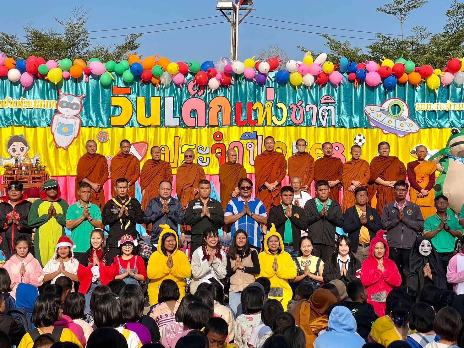 วันที่ 11 มกราคม 2568 หลวงพ่อพระครูถาวรวุฒิกิจ พระครูบาศรี เจ้าคณะอำเภอท่าสองยาง เจ้าอาวาสวัดป่าขะเนจื้อ พระครูสังฆรักษ์วีรวัฒน์ วีรวฑฺฒโน หรือพระครูอ๊อด วัดเจดีย์หลวง จังหวัดเชียงใหม่ และนายประหยัด อุสาห์รัมย์ ผู้อำนวยการโรงเรียนบ้านห้วยนกกก อำเภอท่าสองยาง จังหวัดตากร่วมกันจัดกิจกรรมวันเด็กแห่งชาติประจำปี 2568