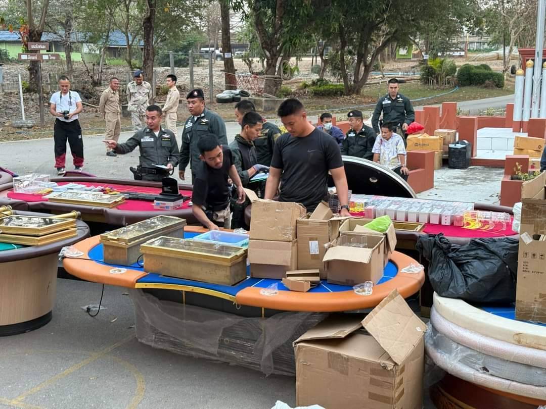 เมื่อวันที่ 6 ก.พ.68 ผู้สื่อข่าวรายงานว่า ขณะที่ พ.ต.ต. สิทธิชัย จันทรโคตร สารวัตรกองกำกับการตำรวจตระเวณชายแดน(ตชด.)ที่ 34 และกำลังพชุดเคลื่อนที่เร็วกองร้อย ตชด. 346 พร้อมด้วย พ.ต.อ.ศุภวัฒน์ ศรีชัยชนะ ผู้กำกับการ ตชด.34 ค่ายพระเจ้าตาก ร่วมกับพ.ต.อ.ศรายุทธ แผลงปัญญา รักษาราชการแทนผู้กำกับ สภ.แม่สอด จ.ตาก และเจ้าหน้าที่ทหารจากหน่วยเฉพาะกิจราชมนู, นายสัญญา เพชรเศษ นายแม่สอด,เจ้าหน้าที่ศุลกากรแม่สอด ได้ร่วมกันตรวจสอบอุปกรณ์การพนันออนไลน์ พร้อมโต๊ะบาคาร่า จำนวน 1 คันรถยนต์บรรทุก หลังจากเจ้าหน้าที่สกัดจับพร้อมยึดของกลางได้บริเวณบ้านห้วยม่วง หมู่ที่ 6 ต.ท่าสายลวด อ.แม่สอด ขณะที่กำลังบรรทุกสิ่งของอุปกรณ์การพนันไปส่งที่บ่อนกาสิโนฝั่งเมียนมาตรงข้ามบ้านห้วยม่วง