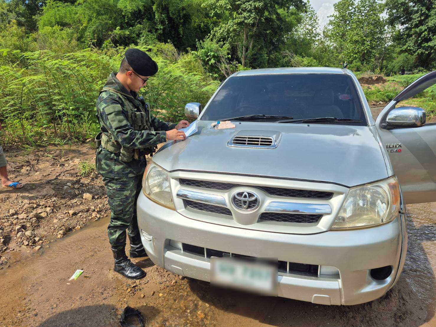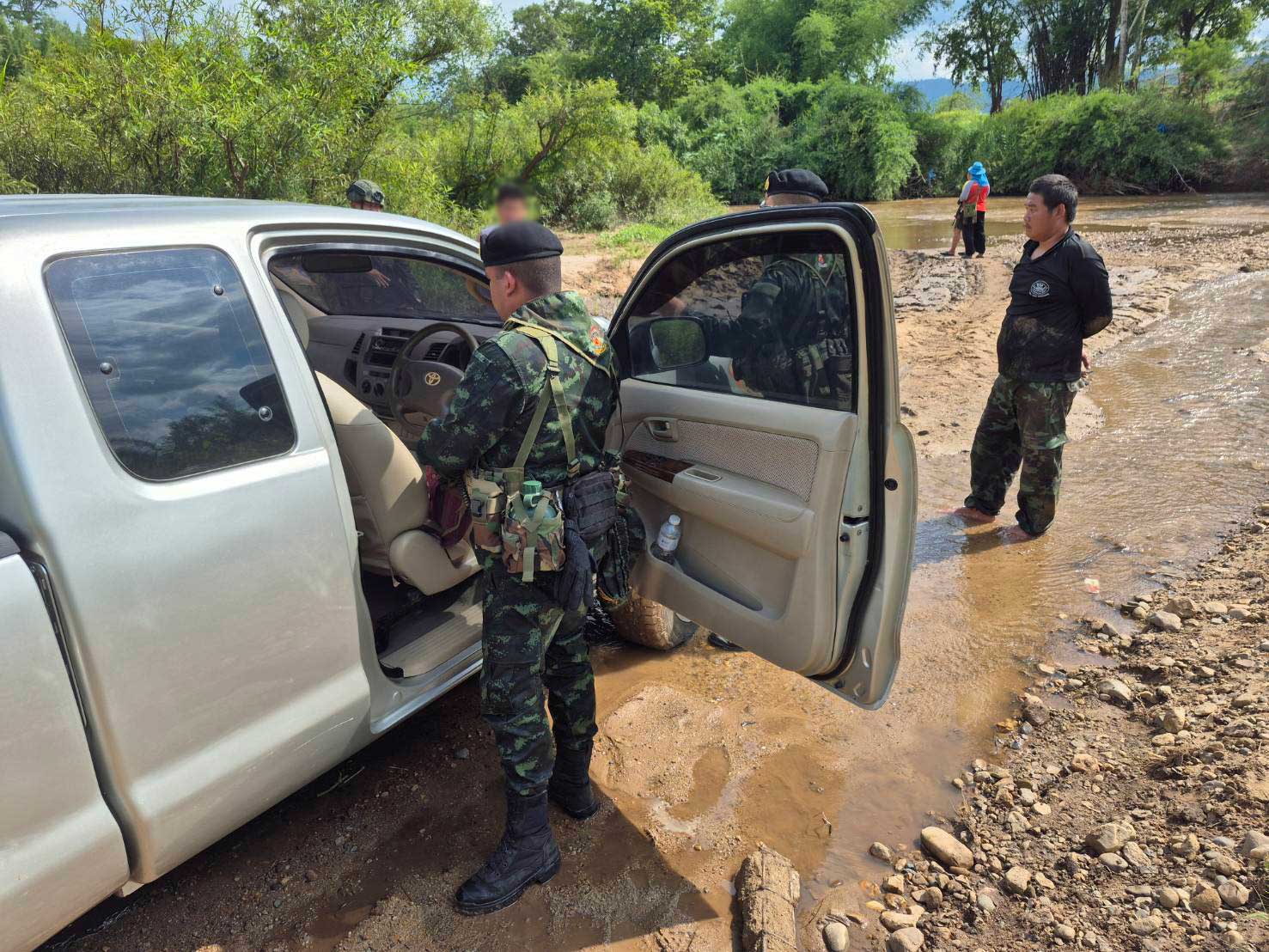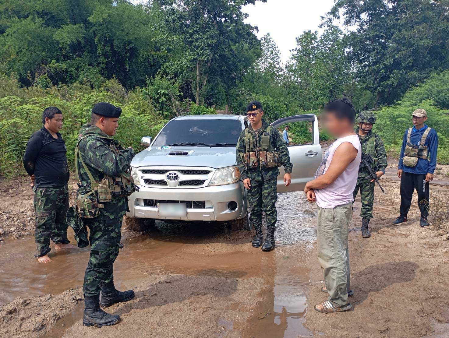 เมื่อวันที่ 6 พฤษภาคม 2568 ทหารกองร้อย ร.433 หน่วยเฉพาะกิจราชมนู กำลังลาดตระเวน และเฝ้าตรวจบริเวณ ช่องทางธรรมชาติ บ้านหมื่นฤาชัย อ.พบพระ จ.ตาก พบรถยนต์ ยี่ห้อ Toyota Hilux vigo ทะเบียนเชียงใหม่ ขับผ่านมุ่งหน้าตรงไปยังแม่น้ำเมย ฝั่งประเทศเมียนมา หน่วยจึงได้ทำการแสดงตัวเพื่อขอตรวจสอบ ตรวจพบ ผู้ขับขี่รถคันดังกล่าว คือ นาย ธนกร อายุ 26 ปี ชาว ต.พบพระ อ.พบพระ จ.ตาก