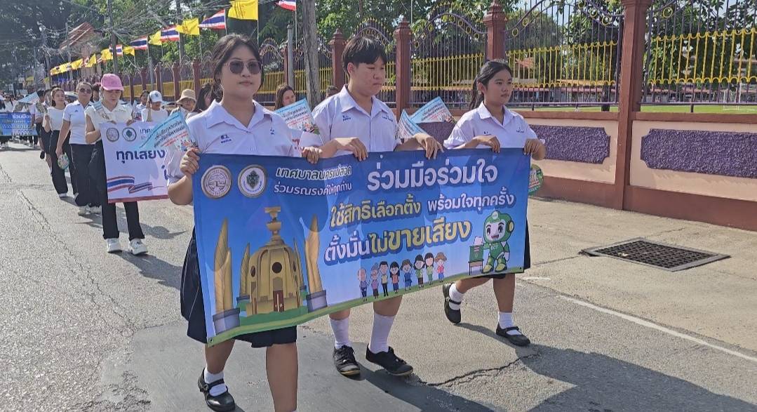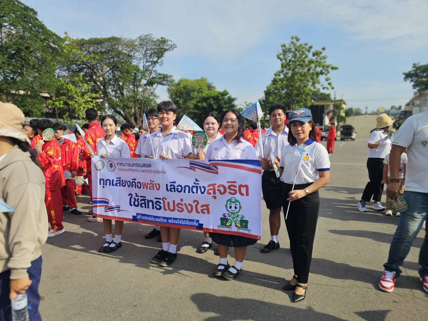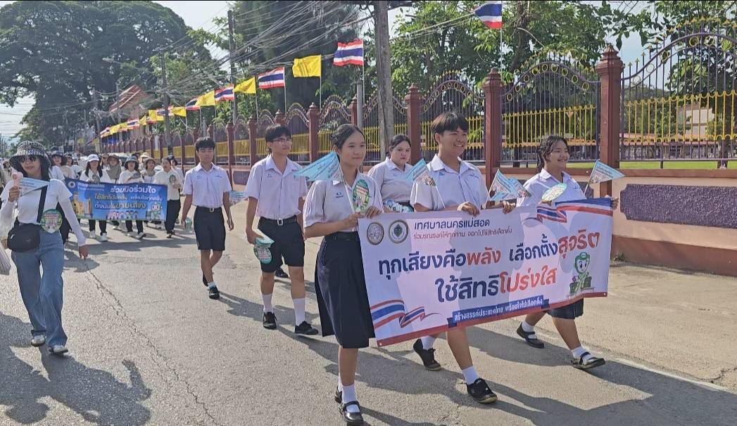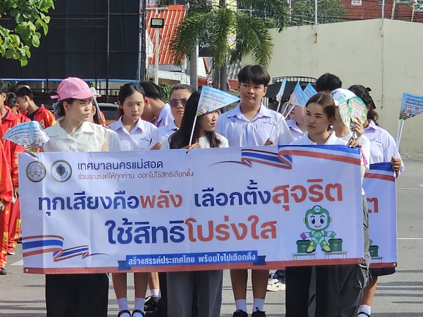 รร.สว ส่งเสริมประชาธิปไตย ร่วมกิจกรรมเดินขบวนรณรงค์การเลือกตั้งสมาชิกสภา และนายกเทศมนตรีนครแม่สอด กับทางหน่วยงานอำเภอแม่สอด