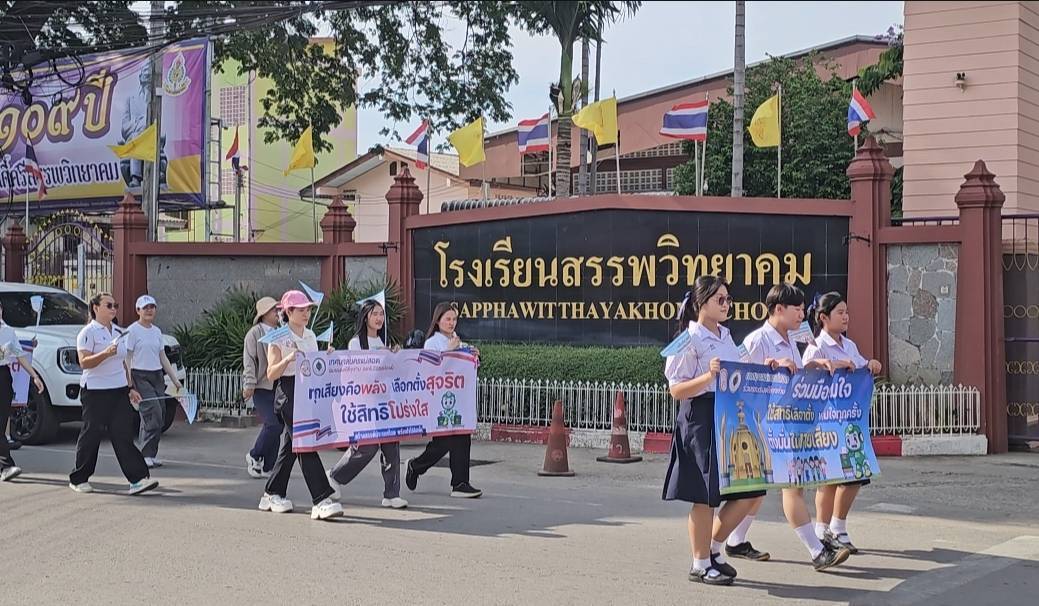 เมื่อวันที่ 7 พ.ค.68 โรงเรียนสรรพวิทยาคม (สว.) จังหวัดตาก สพม.ตาก ร่วมกิจกรรมเดินขบวนรณรงค์เลือกตั้งเลือกตั้งสมาชิกสภาเทศบาล และนายกเทศมนตรีนครแม่สอด โดยนายกฤษณะ เครืออยู่ ผู้อำนวยการโรงเรียนสรรพวิทยาคม มอบหมายให้นางนารินทร์ โทนปั่น รองผู้อำนวยการโรงเรียนพร้อมด้วยคณะผู้บริหาร คณะครู บุคลากร และนักเรียน เข้าร่วมกิจกรรม มีนายสัญญา เพชรเศษ นายอำเภอแม่สอดเป็นประธานดังกล่าว เพื่อเป็นการสร้างการรับรู้ให้ประชาชนได้ตื่นตัวและเชิญชวนออกมาใช้สิทธิเลือกตั้งเลือกตั้งสมาชิกสภาเทศบาลนครแม่สอด และนายกเทศมนตรีนครแม่สอด ในวันอาทิตย์ที่ 11 พฤษภาคม 2568 เวลา 08.00 – 17.00 น. ณ หน่วยเลือกตั้งที่ตนเองมีชื่ออยู่ อย่างพร้อมเพรียงกัน