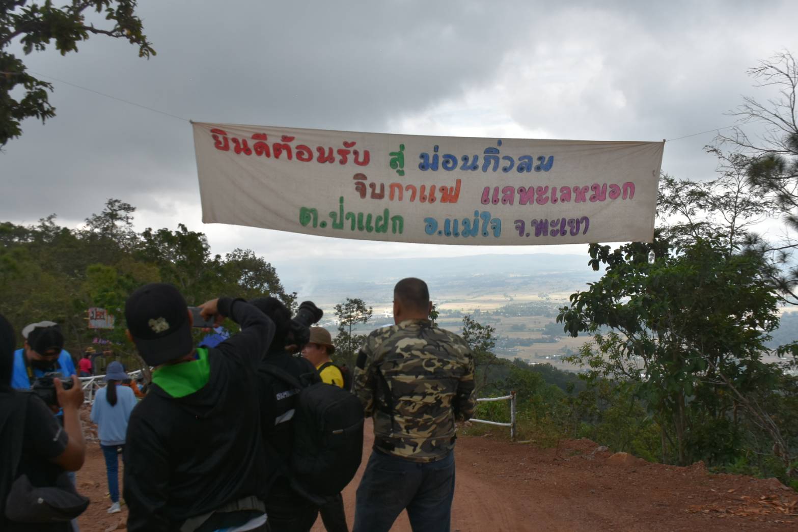 และที่นี่นอกจากได้ชมความงามของหอศิลป์แล้ว ชาวบ้านในพื้นที่ยังได้ปรับปรุงสถานที่บนเขตอุทยานแห่งชาติดอยหลวง สร้างเป็นจุดชมวิว “ม่อนกิ่วลม” เพื่อสร้างเป็นแหล่งท่องเที่ยวชมทิวทัศน์ 2 จังหวัด เชียงราย-พะเยา โดยนายพีรัช จันธิมา นอภ.แม่ใจ จ.พะเยา ได้พาผู้สื่อข่าวไปชมความงามของทิวทัศน์บนจุดสูงสุด และเล่าให้ฟังว่า อ.แม่ใจ ส่งเสริมการท่องเที่ยวเชื่อมโยง ตั้งแต่บ้านปางปูเลาะ ผาแดง ป่าเมี่ยง และลงมาที่บ้านป่าแฝกเหนือ ระยะทางประมาณ 5 กม. ที่นี่ทาง ทต.ป่าแฝก ชุมชน และ อ.แม่ใจ ร่วมกันสร้างจุดชมวิวม่อนกิ่วลมขึ้น ซึ่งจุดชมวิวนี้สามารถมองเห็นทั้งทุ่งนาของ อ.พาน จ.เชียงราย และบรรยากาศของ อ.แม่ใจ สามารถมองเห็นกว๊านพะเยาได้ เป็นอีกหนึ่งสถานที่เที่ยวที่ไม่ควรพลาด