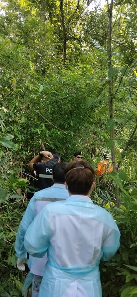 นายพุฒิเมธ ได้ให้สัมภาษณ์ว่า ก่อนหน้านั้นตนเองได้รับแจ้งจากครอบครัวของผู้ตายว่าตัวของผู้ตายได้หายตัวออกจากบ้านไปเมื่อวันที่ 11 มิ.ย.66 ที่ผ่านมาโดยก่อนหน้านั้นเห็นว่าผู้ตายได้เดินทางขึ้นไปกรีดยางพาราบนเขาซึ่งอยู่ไม่ไกลจากหมู่บ้านนัก แต่หลังจากนั้นช่วงเย็นญาติผู้ตายไม่เห็นลงมาเอากับข้าวที่เตรียมไว้ให้คงคิดว่าผู้ตายหน้าจะนอนในสวนยางพาราและหาอะไรกินเองแล้ว จนหลังจากนั้นกลับไม่ได้รับการติดต่อจากผู้ตายอีกเลยจนทำให้ญาติ ๆ รู้สึกไม่สบายใจเกี่ยวกับตัวของผู้ตายที่หายไปนี้ จนมาวันนี้ตอนช่วงเช้าเวลาประมาณ 09.00 น.ตนเองจึงได้ระดมกำลังชาวบ้านเกือบ 50 คน เข้าไปในพื้นที่ที่ญาติพบเห็นรถจักรยานยนต์จอดทิ้งไว้และได้เดินเท้าเข้าไปหา โดยใช้เวลาประมาณ 2 ชม.กว่าและได้พบศพผู้ตายในที่สุด หลังจากนั้นตนจึงให้ชาวบ้านแจ้งเจ้าหน้าที่เพื่อเข้ามาตรวจสอบในที่เกิดเหตุทันที