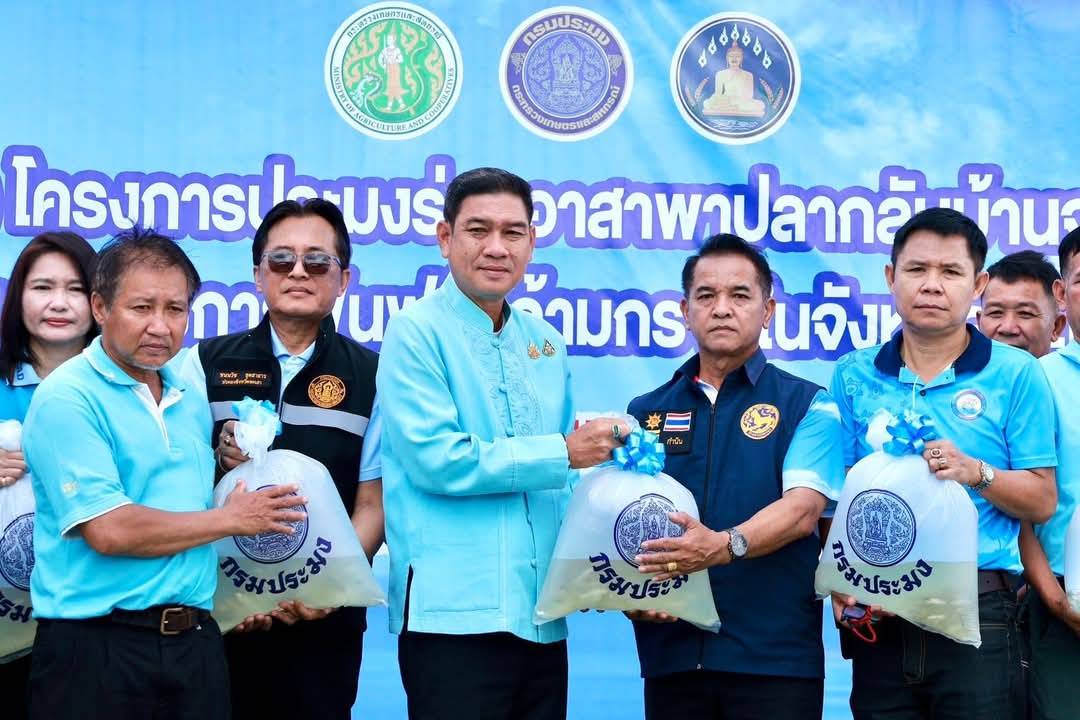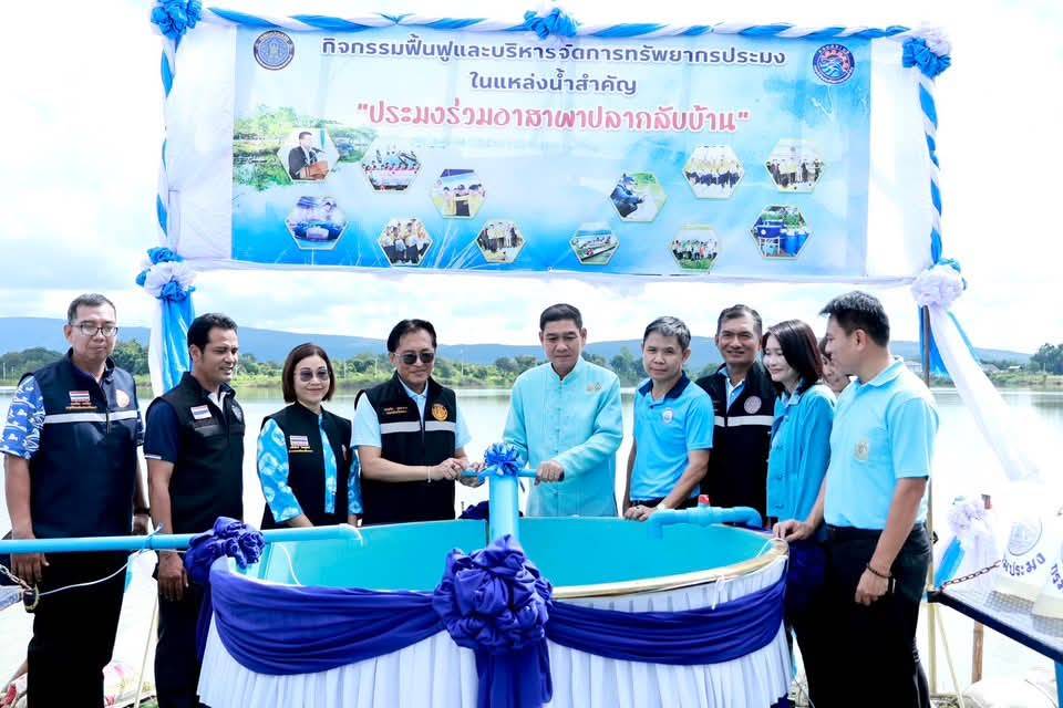 ผู้ว่าราชการจังหวัดพะเยา เปิด (Kick off) โครงการประมงร่วมอาสาพาปลากลับบ้านจากโขงสู่กว๊านพะเยา และโครงการฟื้นฟูกุ้งก้ามกรามในจังหวัดพะเยา เพิ่มความหลากหลายทางชีวภาพในระบบนิเวศทางน้ำ ฟื้นฟูแหล่งอาหารธรรมชาติ และสร้างรายได้ให้กับชาวประมงในพื้นที่ ณ หนองเล็งทราย อำเภอแม่ใจ