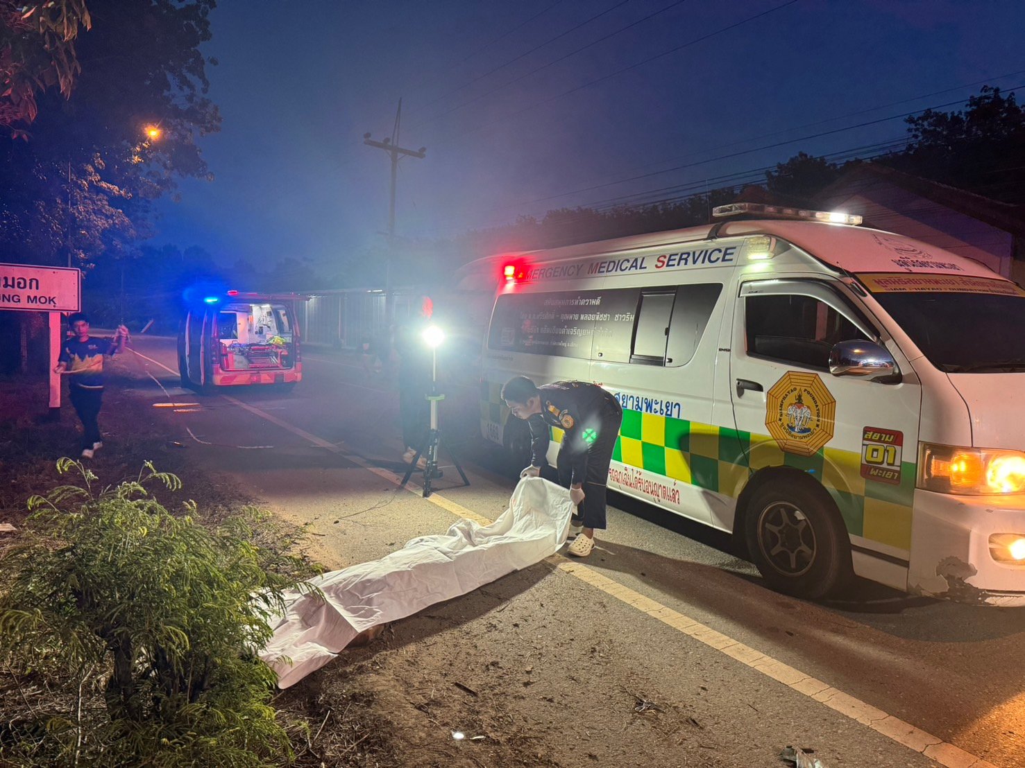 วันที่ 6 ต.ค. 68 ผู้สื่อข่าวรายงานว่า เมื่อเวลาประมาณ 18.30 น.ที่ผ่านมาทาง ร.ต.อ.พิสิฐ เถาวัลยา พนักงานสอบสวนร้อยเวร สภ.เชียงคำ ได้รับแจ้งว่ามีอุบัติเหตุเกิดขึ้นบริเวณรอยต่อเขตหมู่บ้านระหว่างบ้านทุ่งมอก ม.2 ต.เชียงบาน อ.เชียงคำ จ.พะเยา กับบ้านเนินสามัคคี ม.1 ต.อ่างทอง อ.เชียงคำ จ.พะเยา โดยทราบว่ามีเสียชีวิต 1 รายเป็นตำรวจชุดสืบสวน สภ.เชียงคำ จึงได้รีบรายงานเบื้องต้นแก่ พ.ต.อ.ถนัด ชุ่มมะโน ผกก.สภ.เชียงคำ ให้ทราบก่อนหลังจากนั้นจึงลงพื้นที่พร้อมด้วยเจ้าหน้าที่กู้ภัยมูลนิธิสยามรวมใจพะเยาสำนักงานใหญ่ อ.เชียงคำ และแพทย์เวร รพ.เชียงคำ